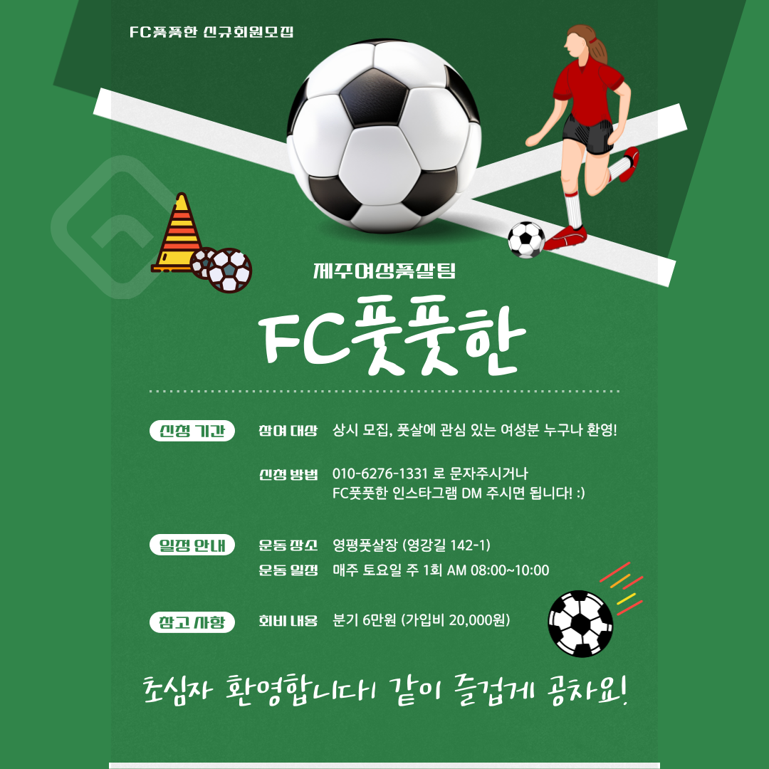 제주 여성 풋살팀 [FC 풋풋한]에서 새로운 신규 회원을 모집합니다!! ⚽