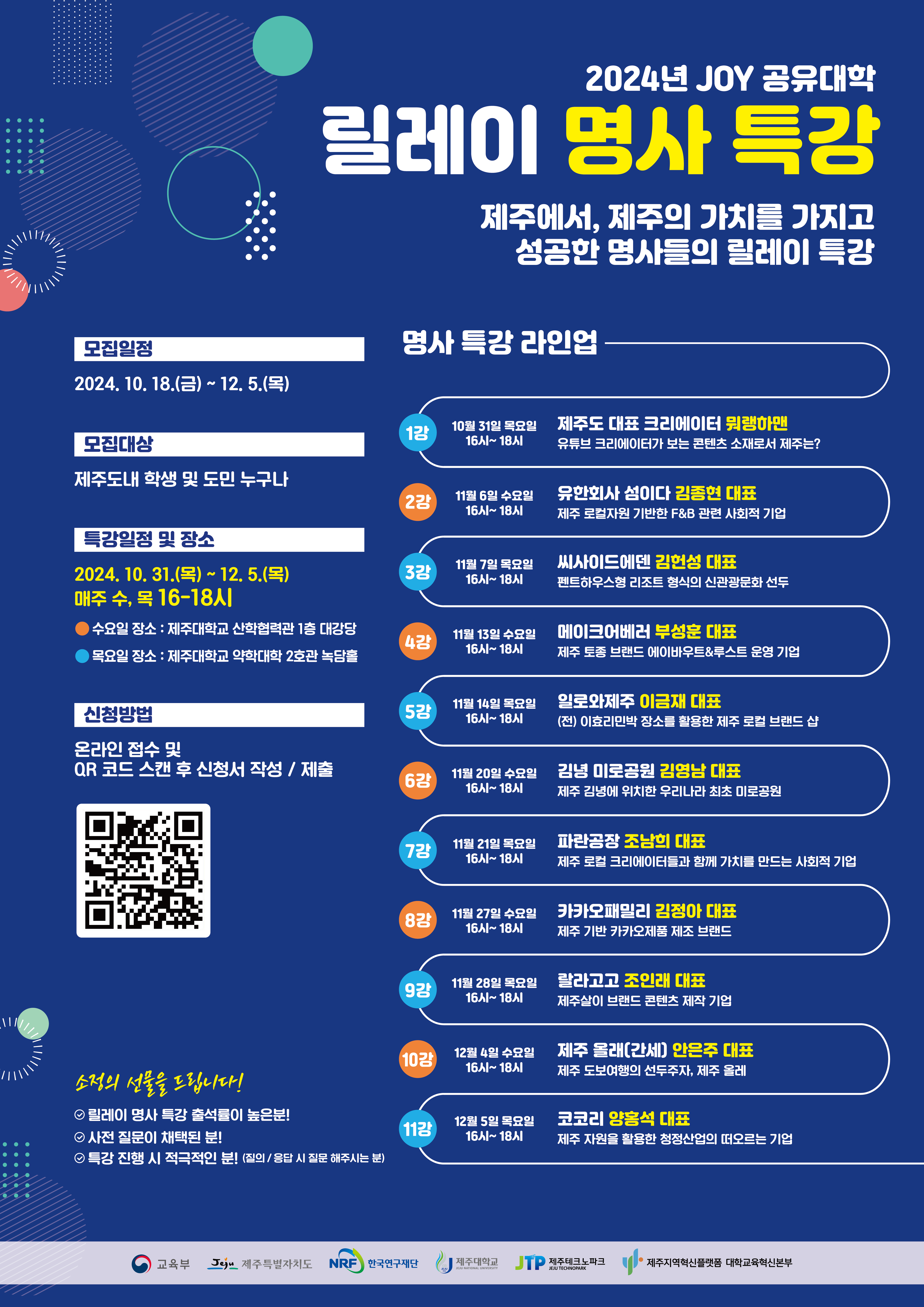 2024년 릴레이 명사 특강 [제주에서, 제주의 가치를 가지고 성공한 명사들의 릴레이 특강]