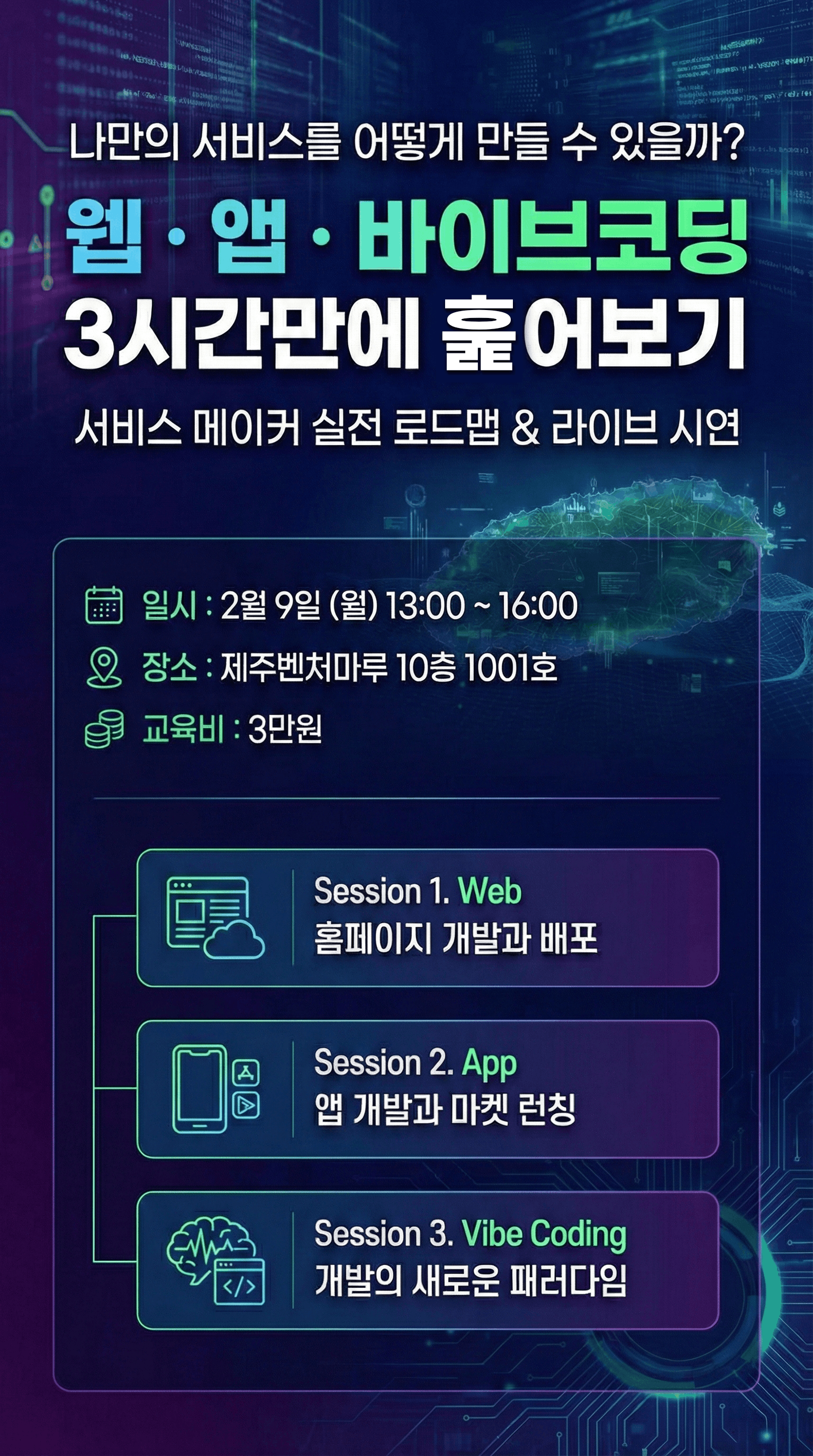 | 제 목 | [제주AI클럽-제프리] 웹·앱·바이브코딩 3시간만에 훑어보기 🚀 | ||