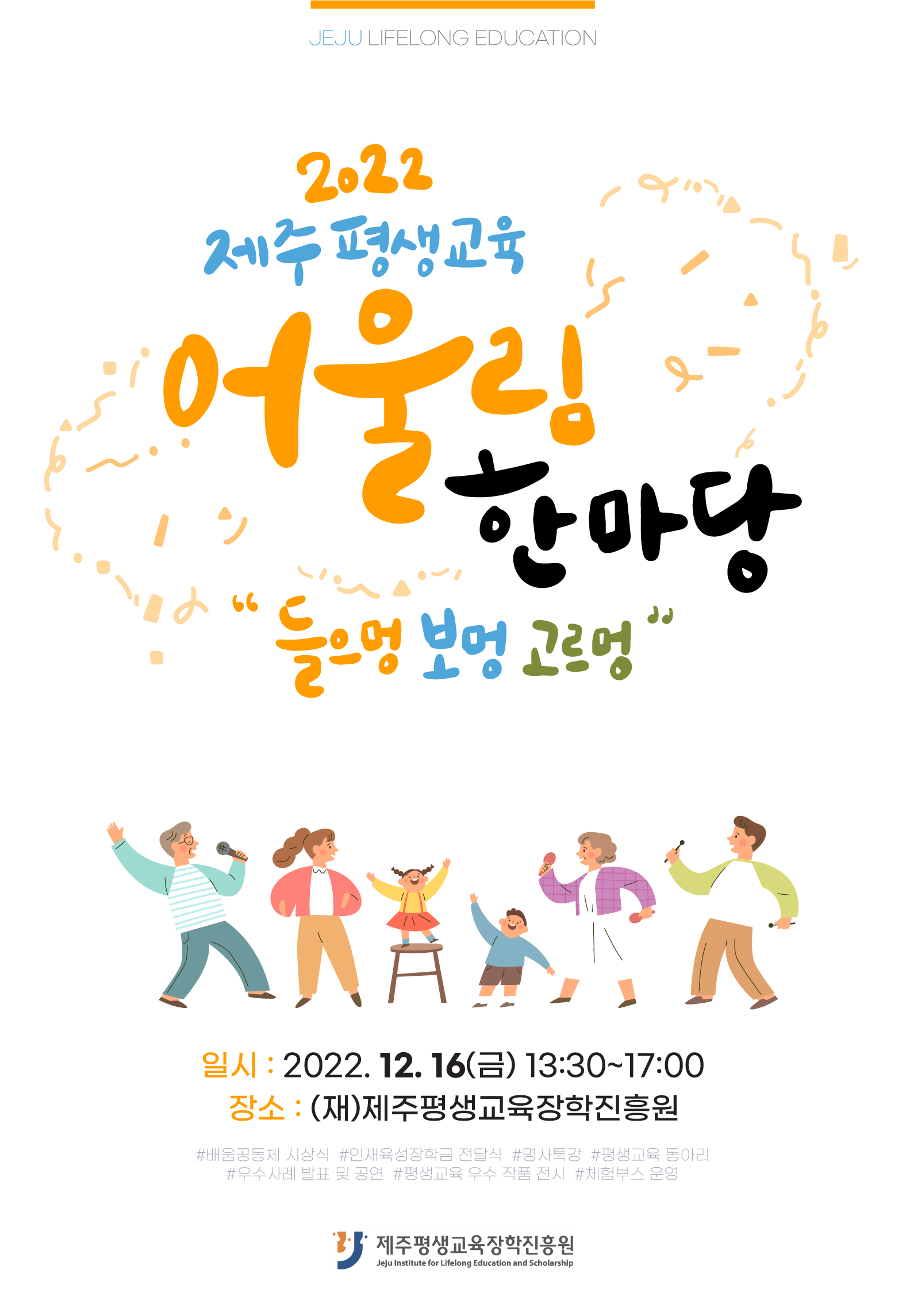 제주평생교육장학진흥원에서는 평생교육 네트워크 활성화를 위하여 제주 평생교육 어울림 한마당을 개최합니다.