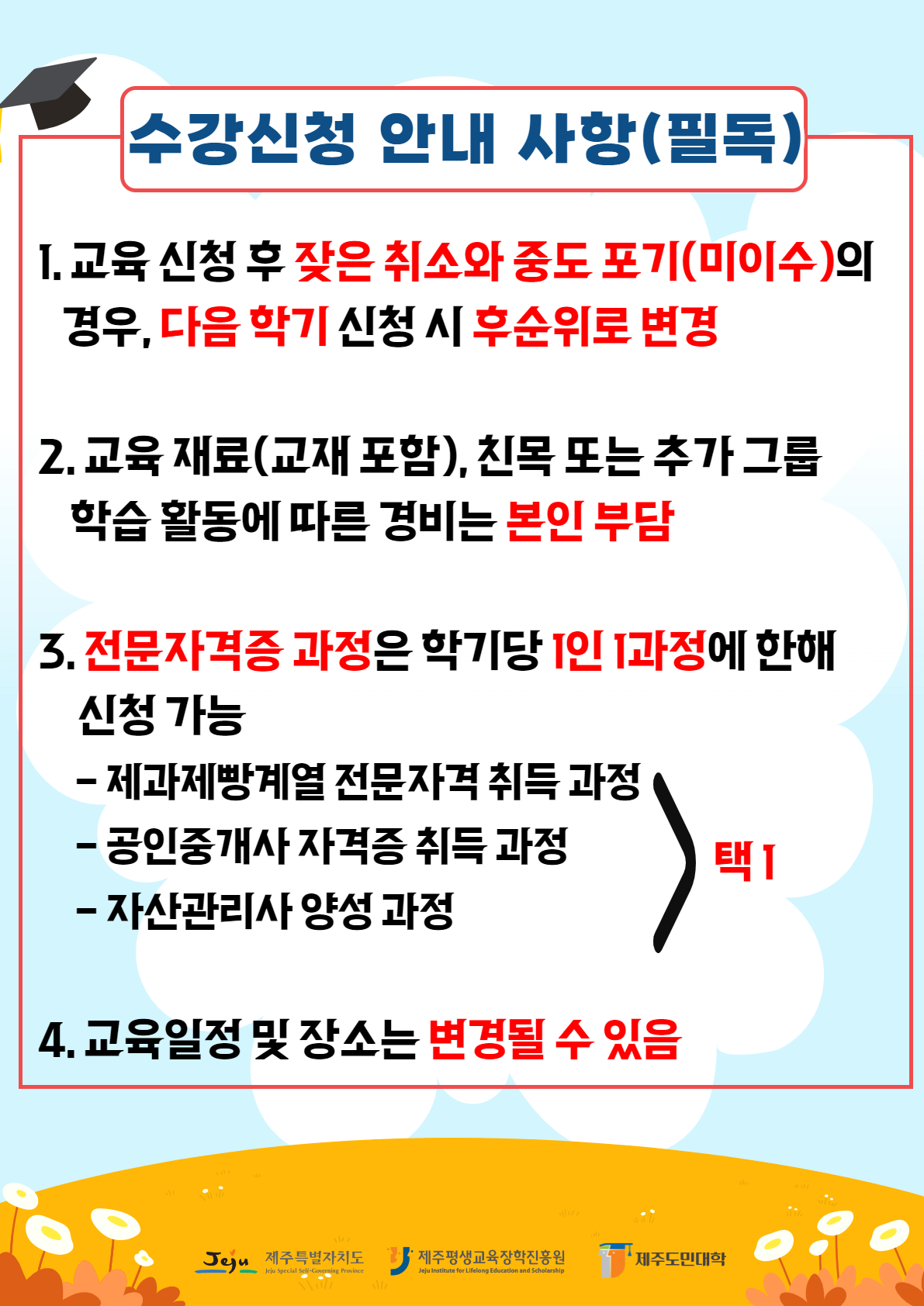 제  목 ★★★★ 2023년 2학기 제주도민대학 교육 신청 방법(안내사항 포함) ★★★★