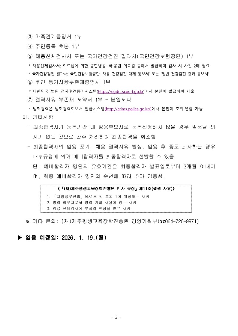 | 제 목 | 2026년 제주시 자기주도학습지원센터 운영인력 공개채용 최종 합격자 발표 및 임용후보자 등록 안내 | ||