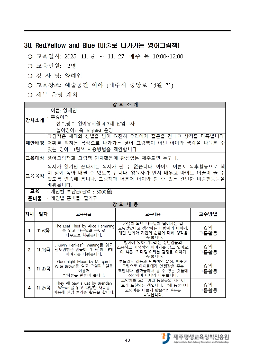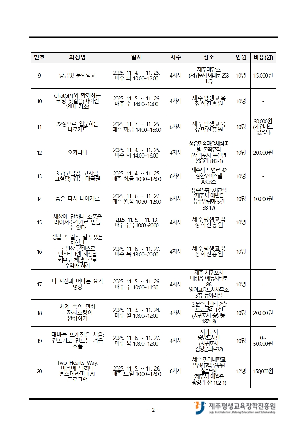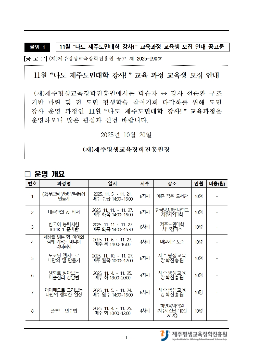 (붙임) (공고문)「제주도민대학」 11월 “나도 제주도민대학 강사!“ 교육과정 교육생 모집 안내.pdf (716 KBytes)