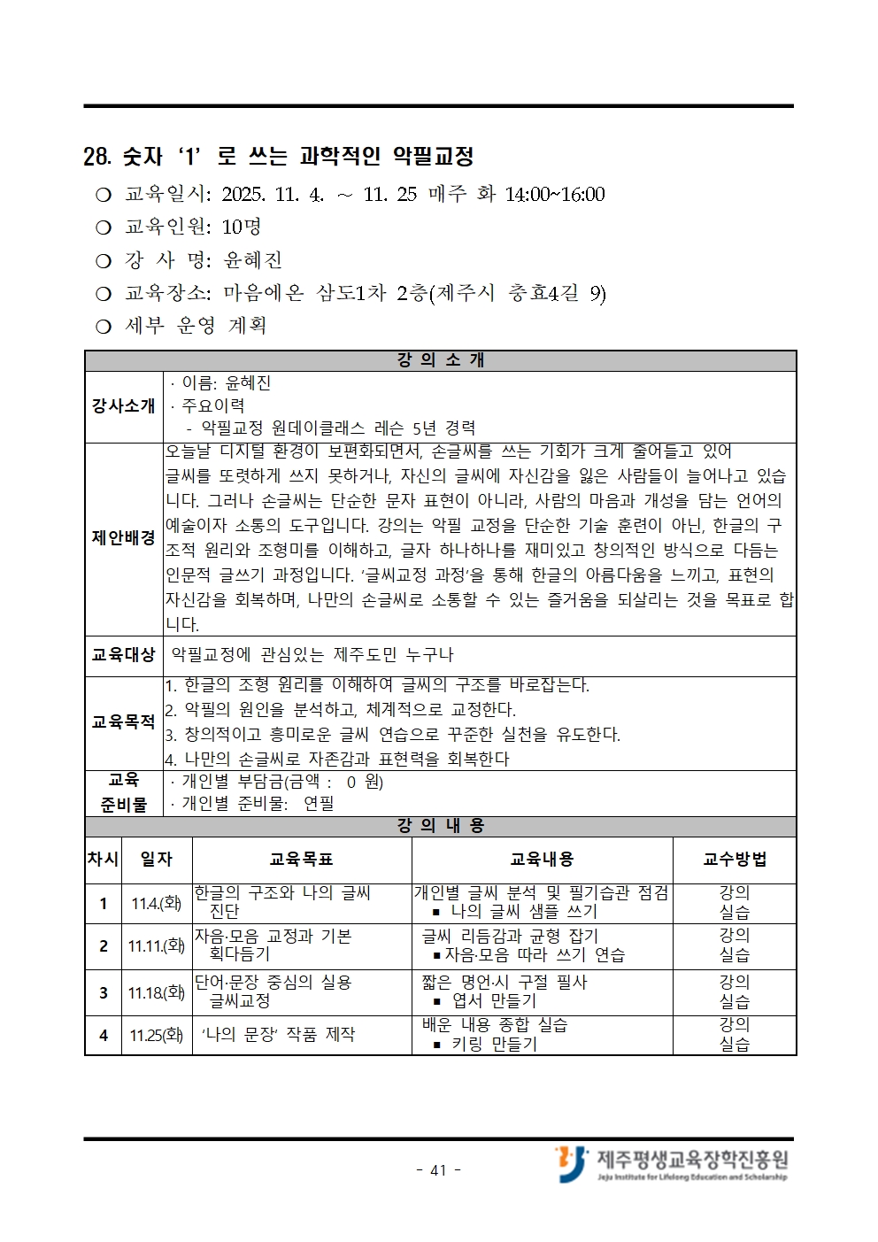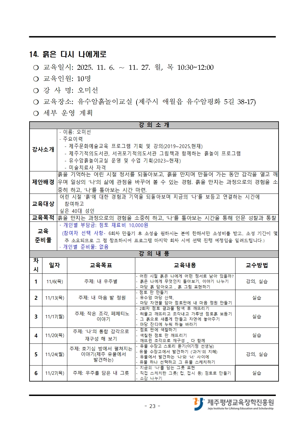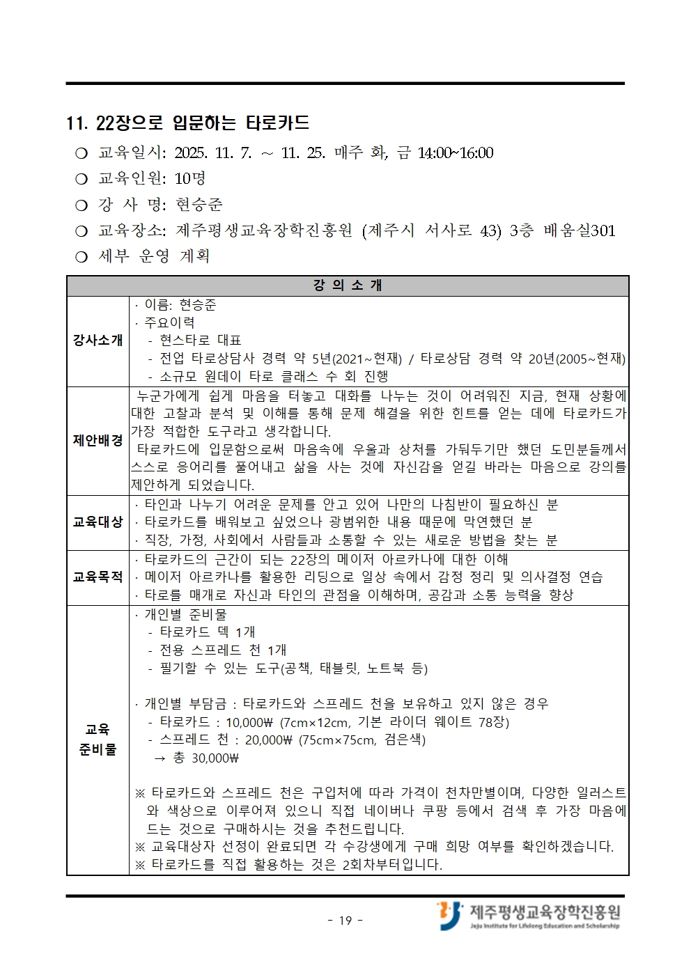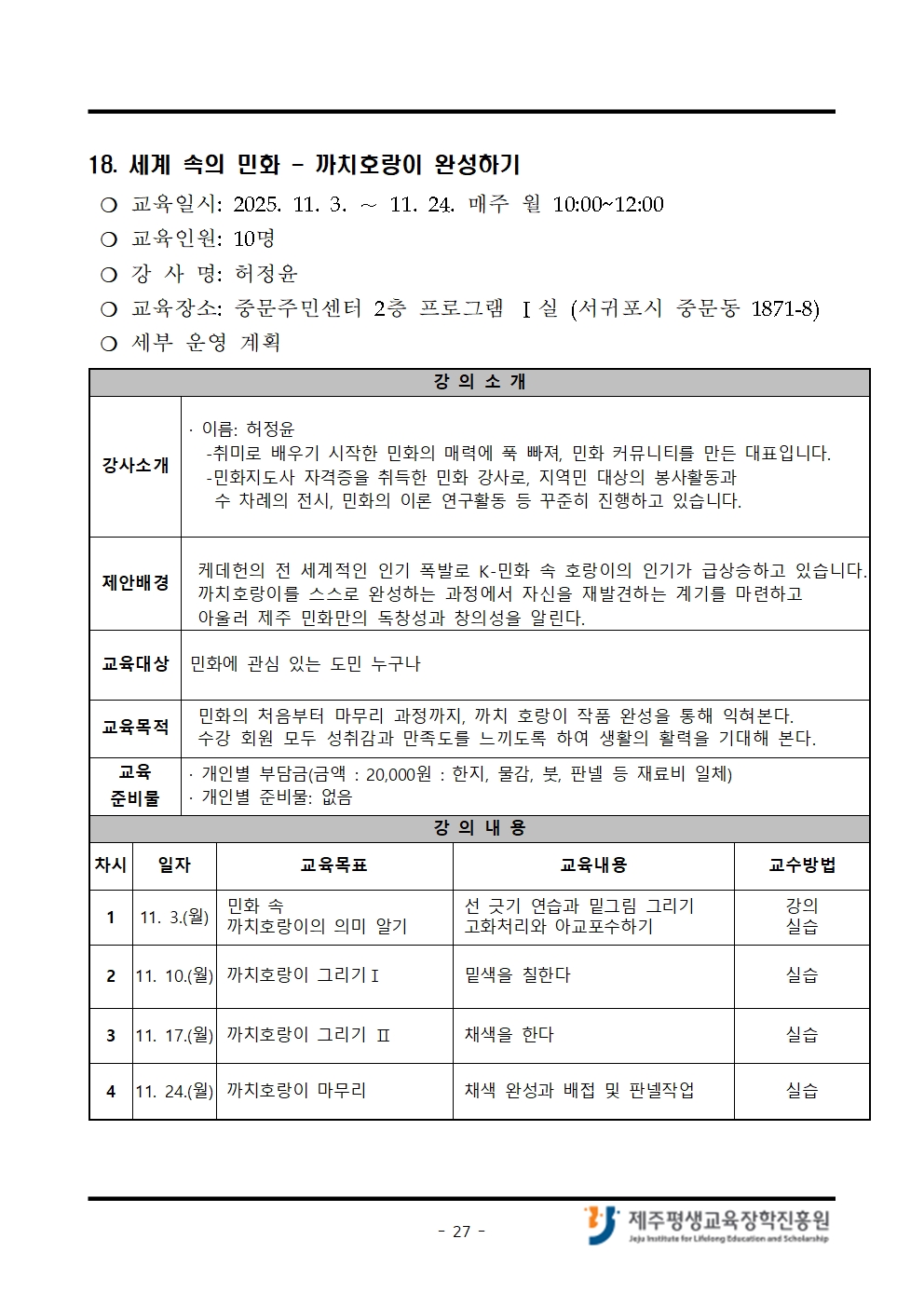 11월 「나도 제주도민대학 강사!」 교육생 모집
