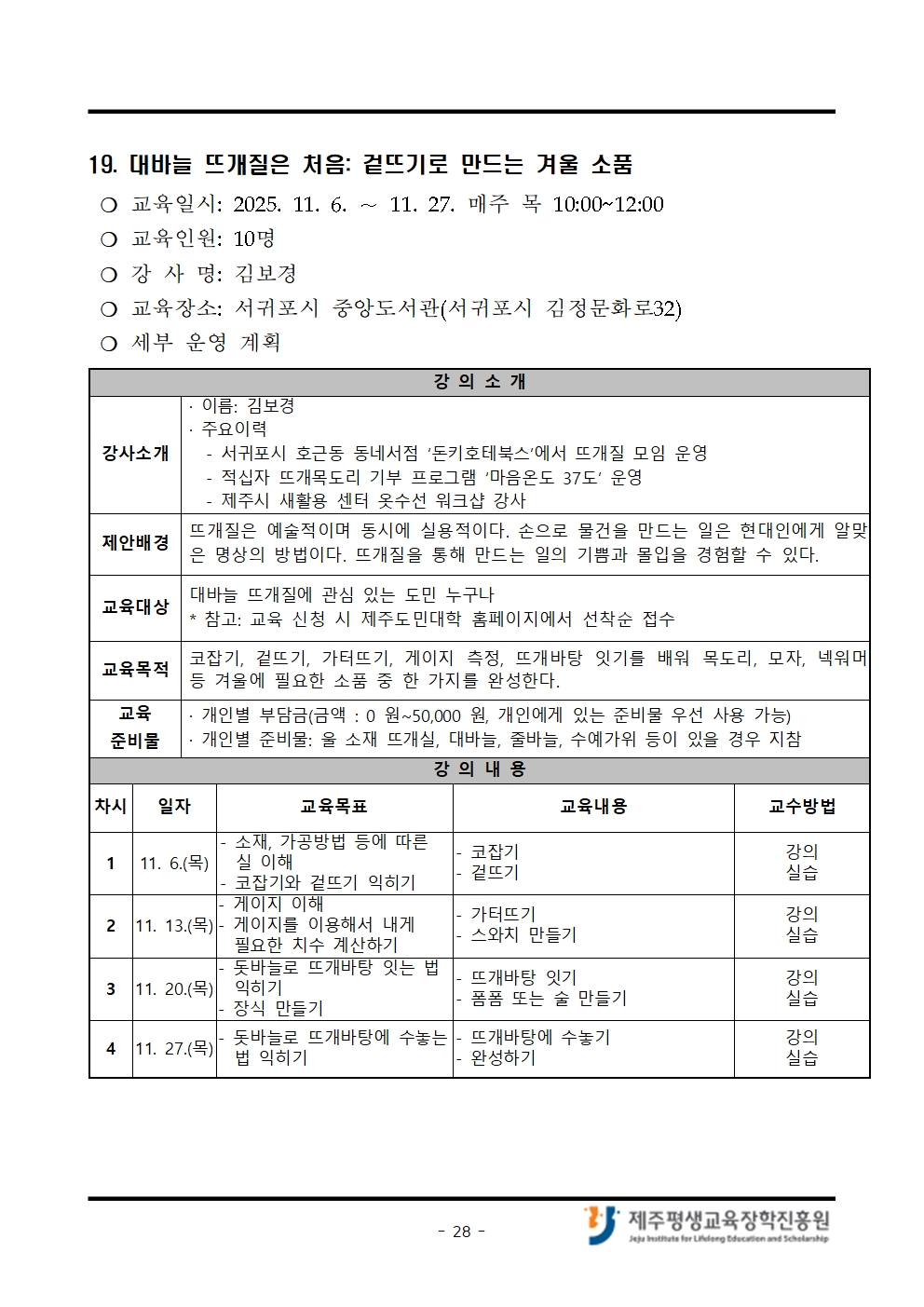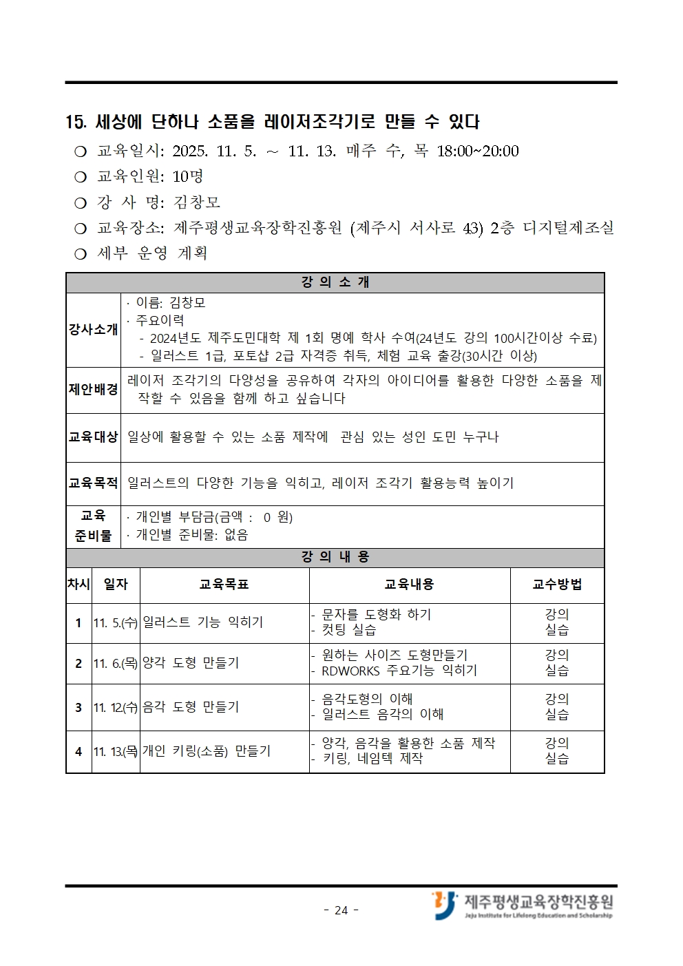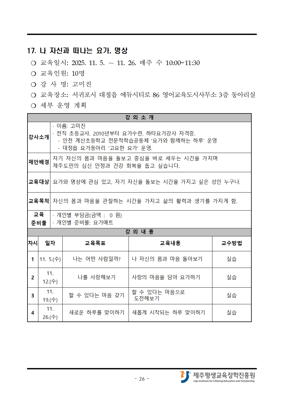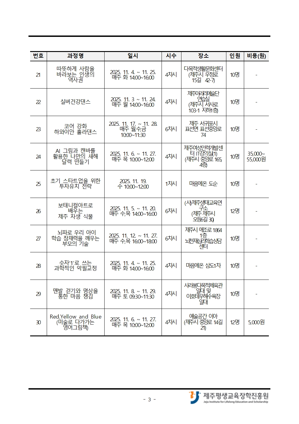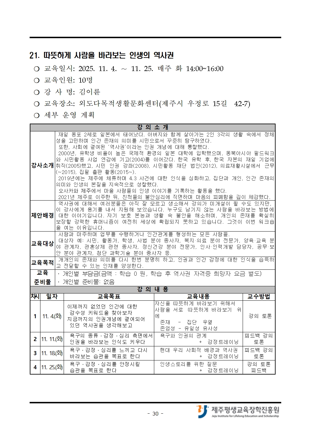 11월 「나도 제주도민대학 강사!」 교육생 모집