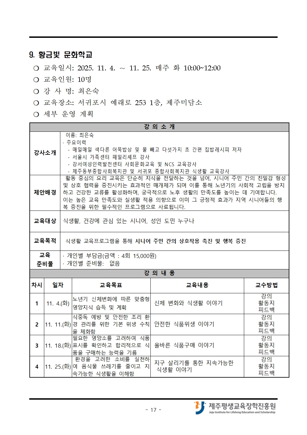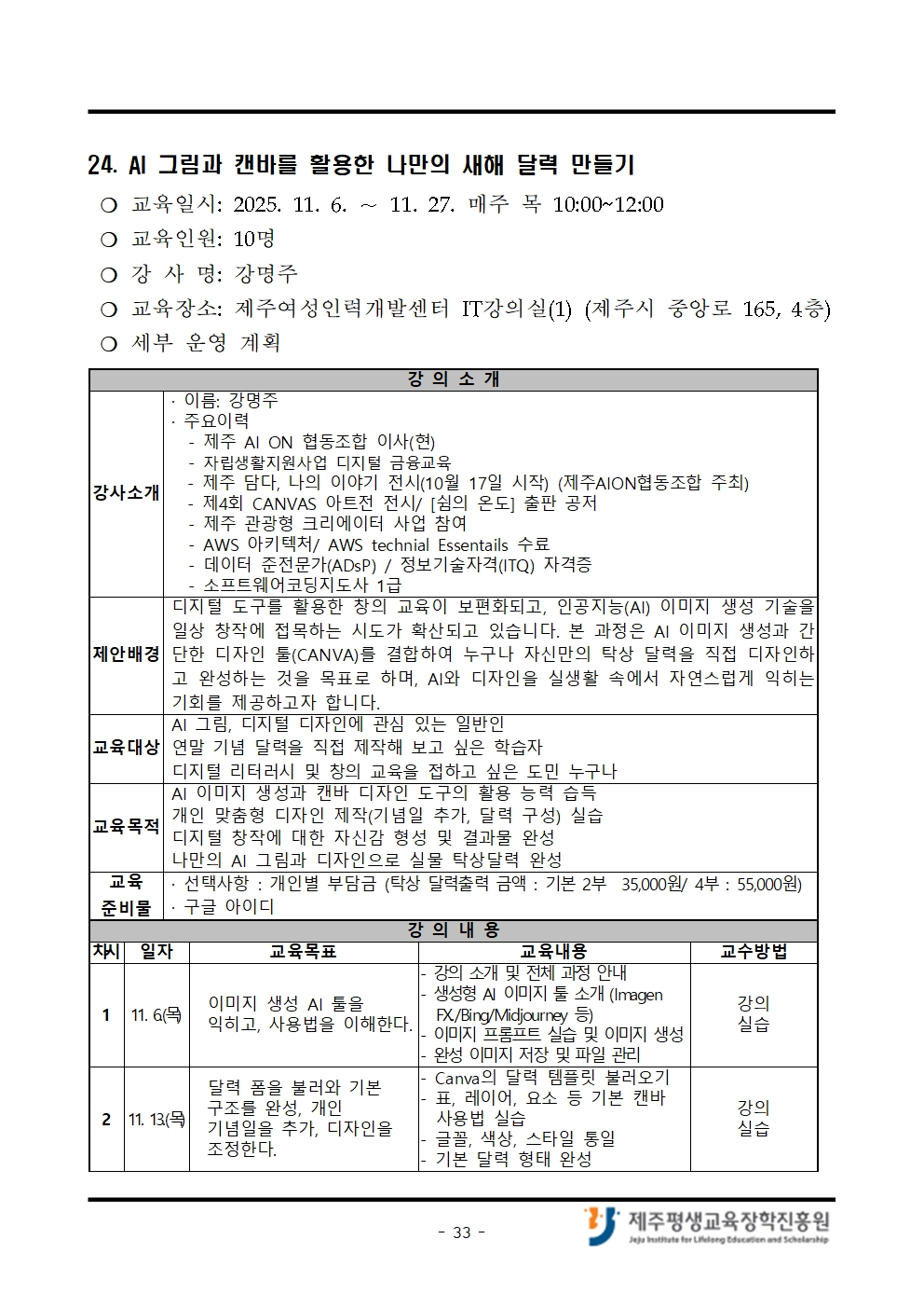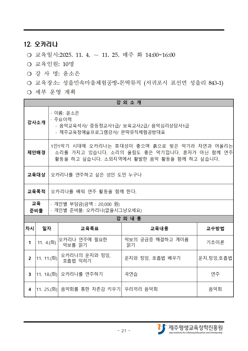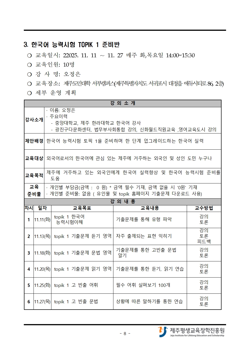 11월 「나도 제주도민대학 강사!」 교육생 모집