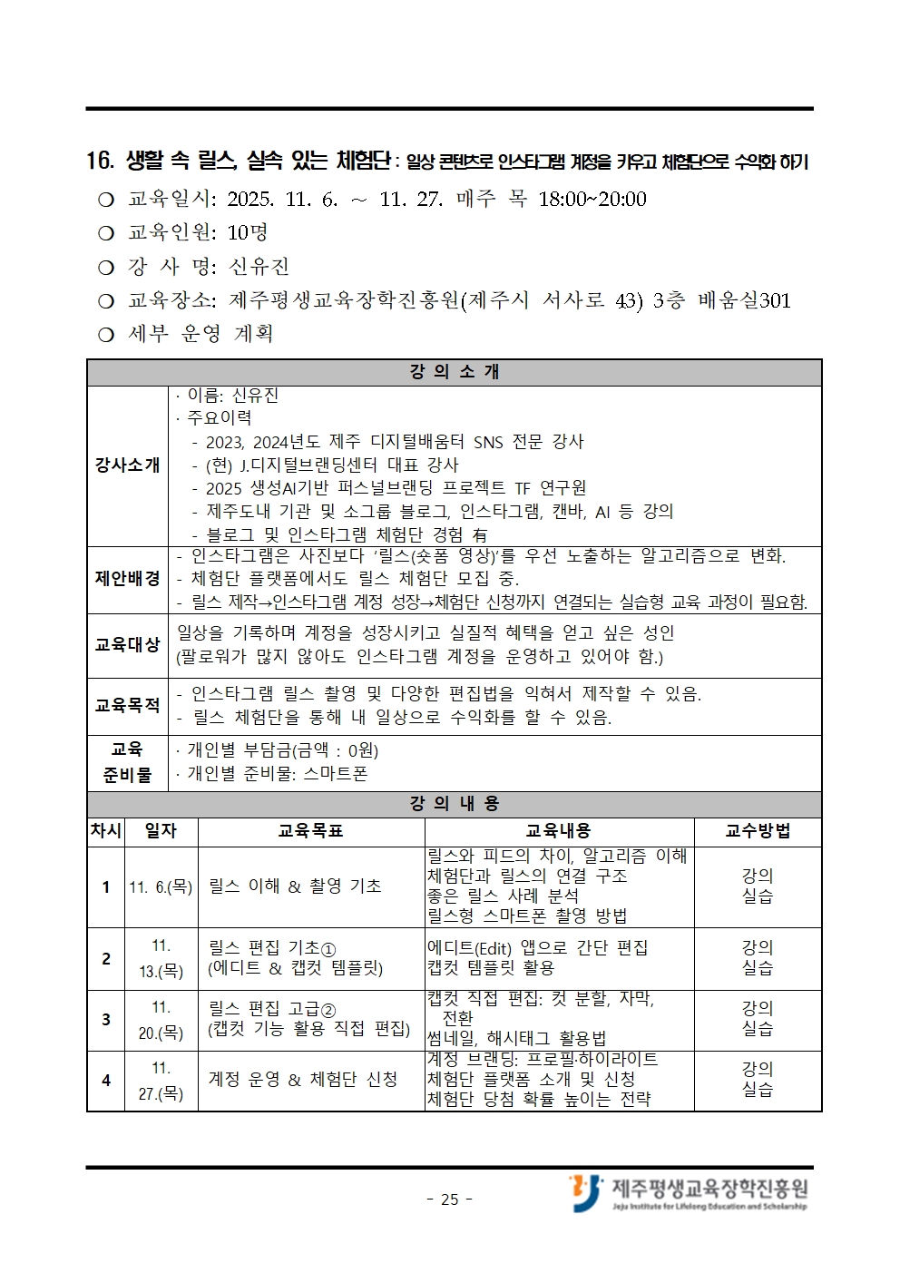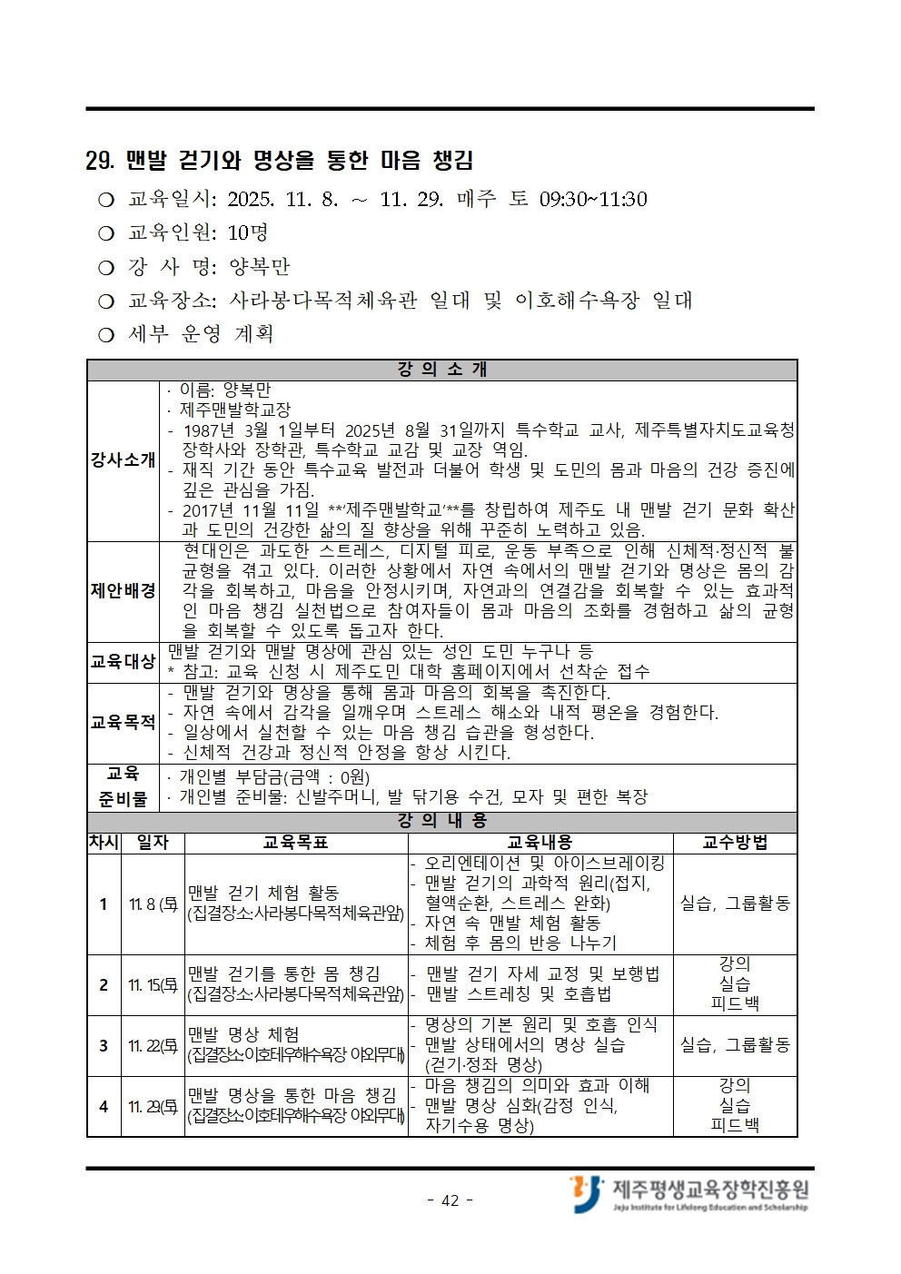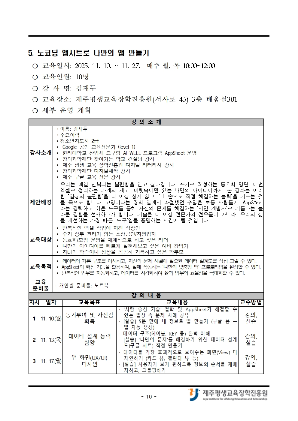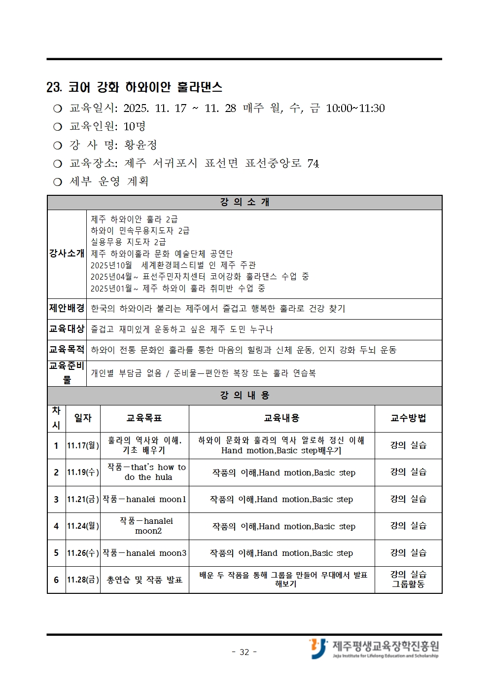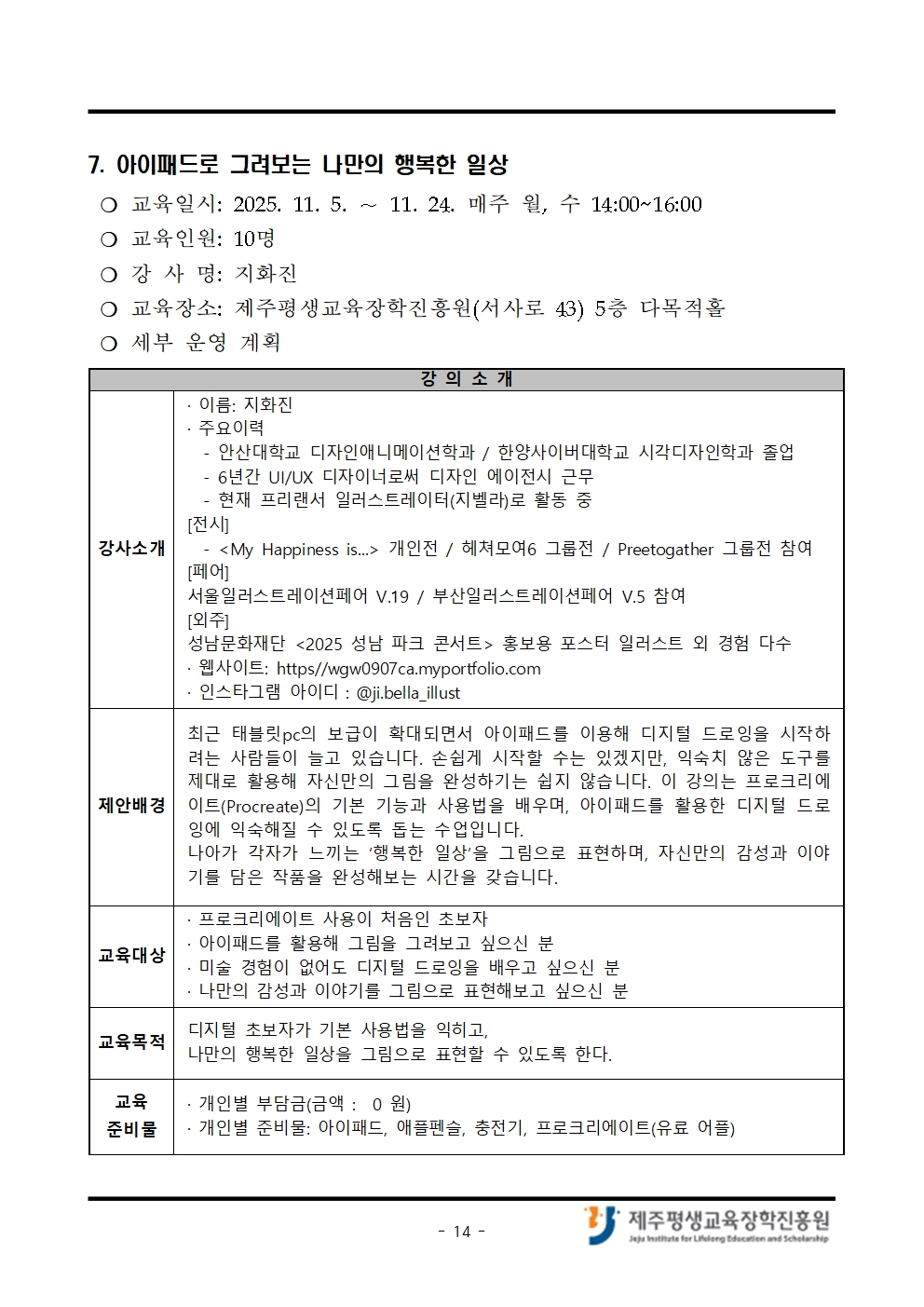 11월 「나도 제주도민대학 강사!」 교육생 모집