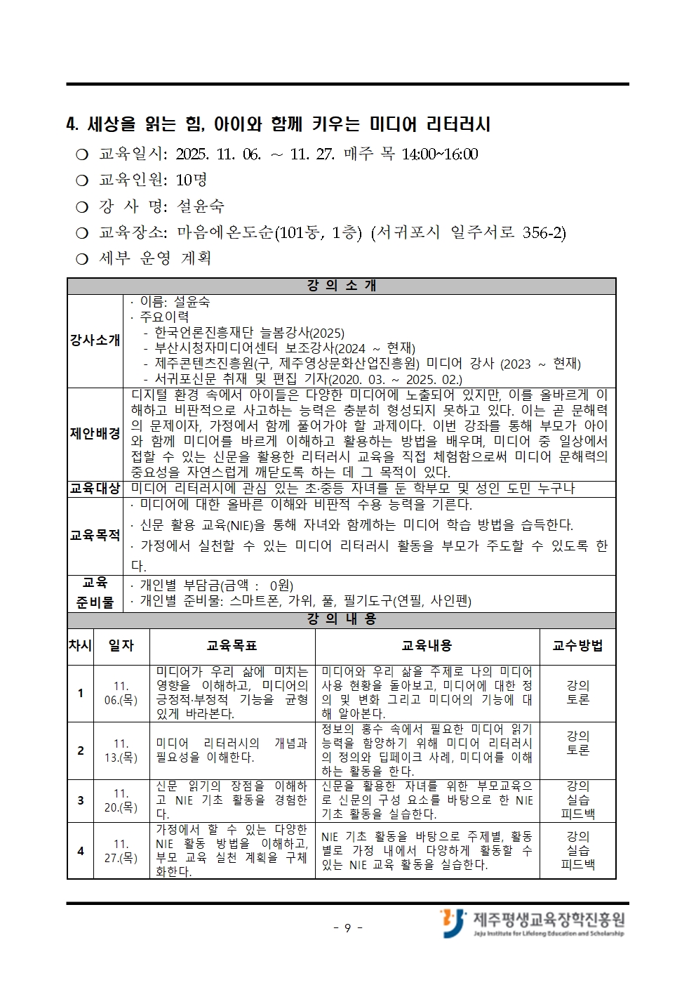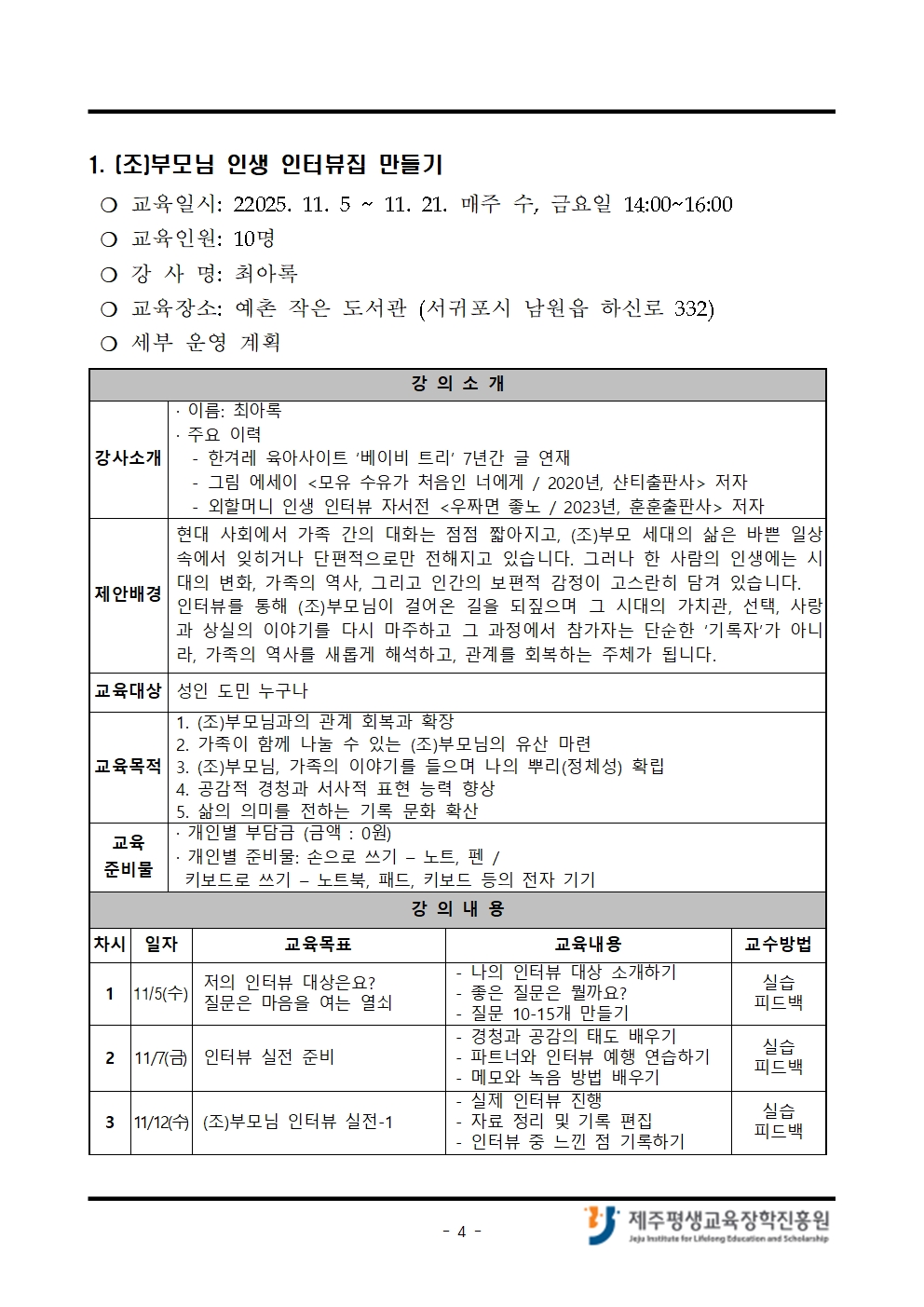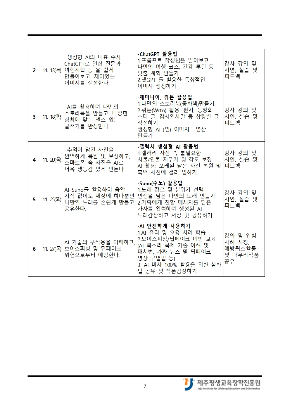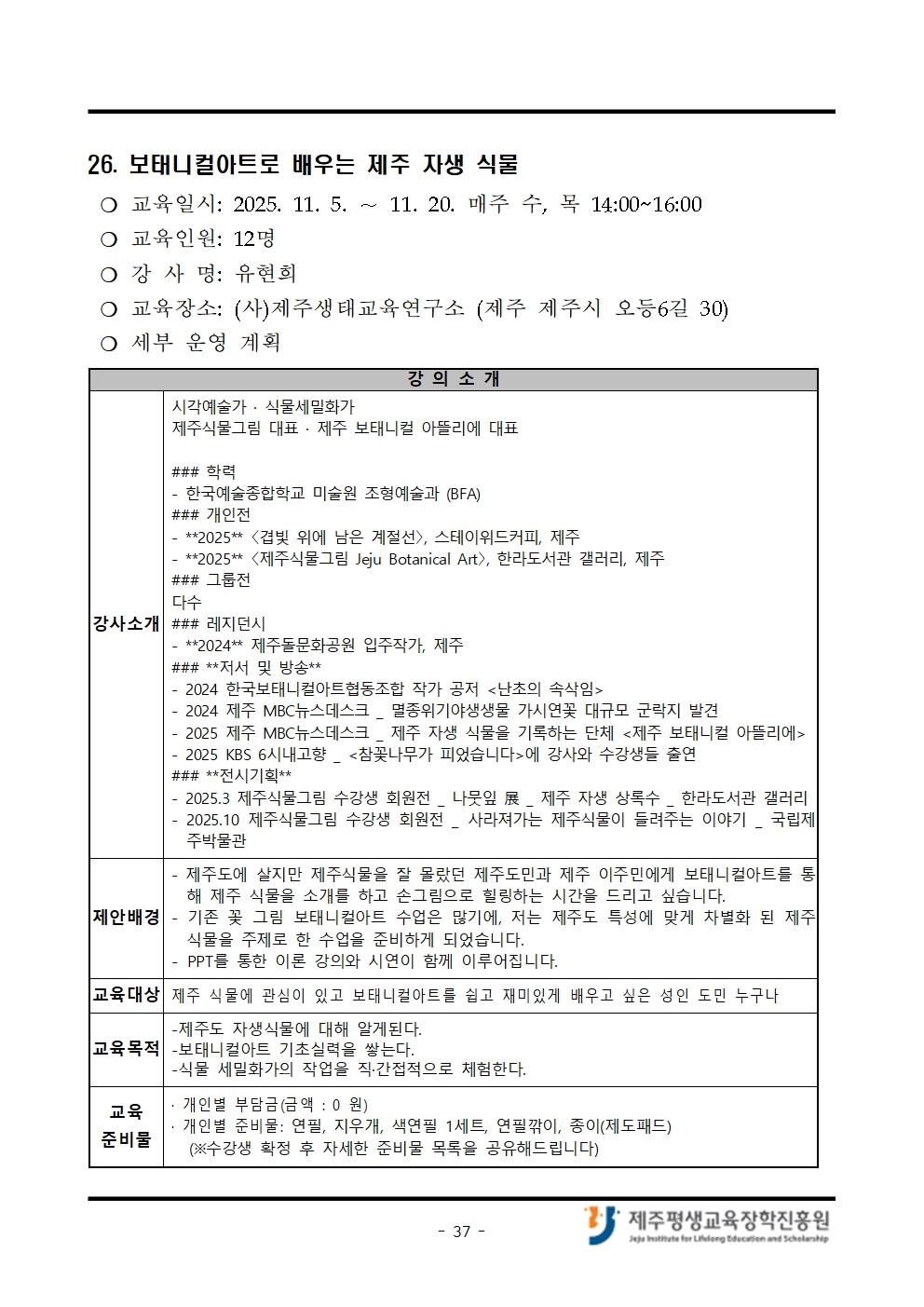 11월 「나도 제주도민대학 강사!」 교육생 모집