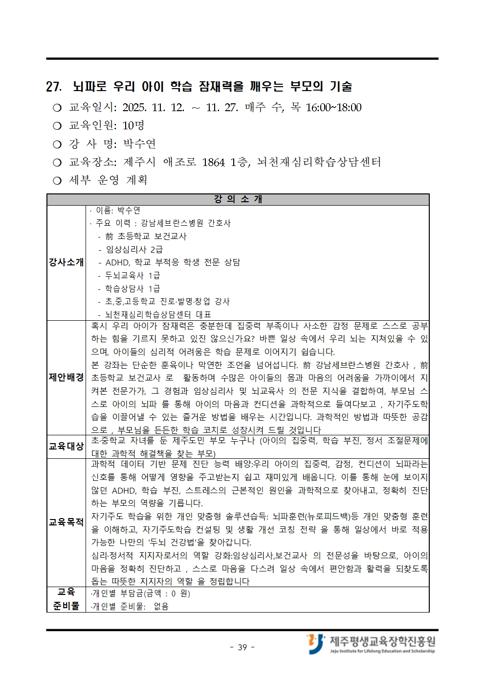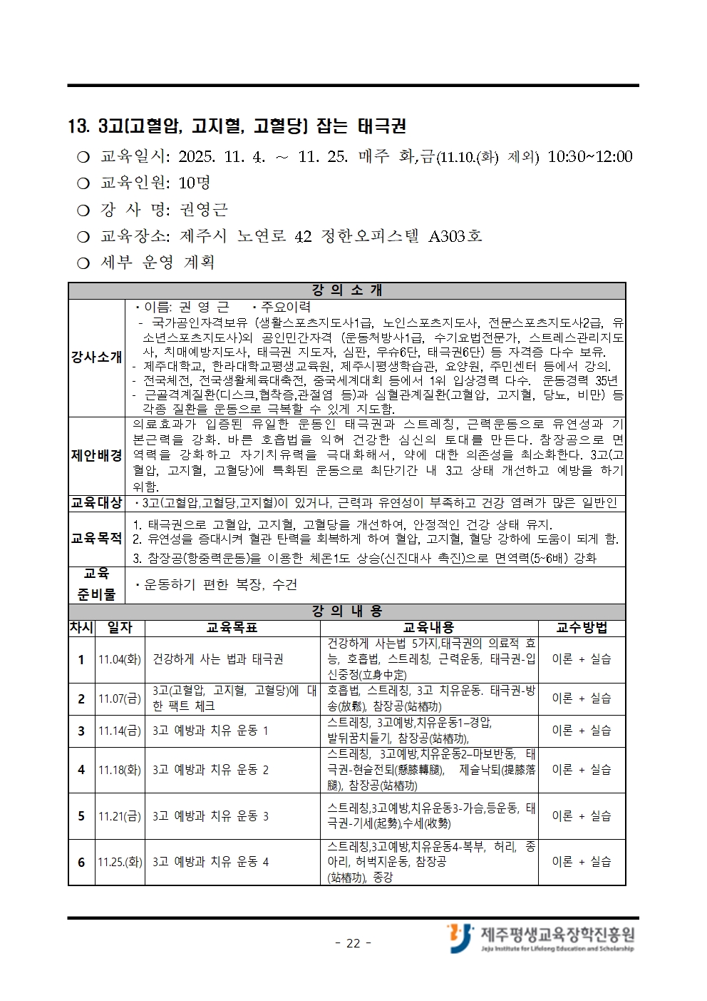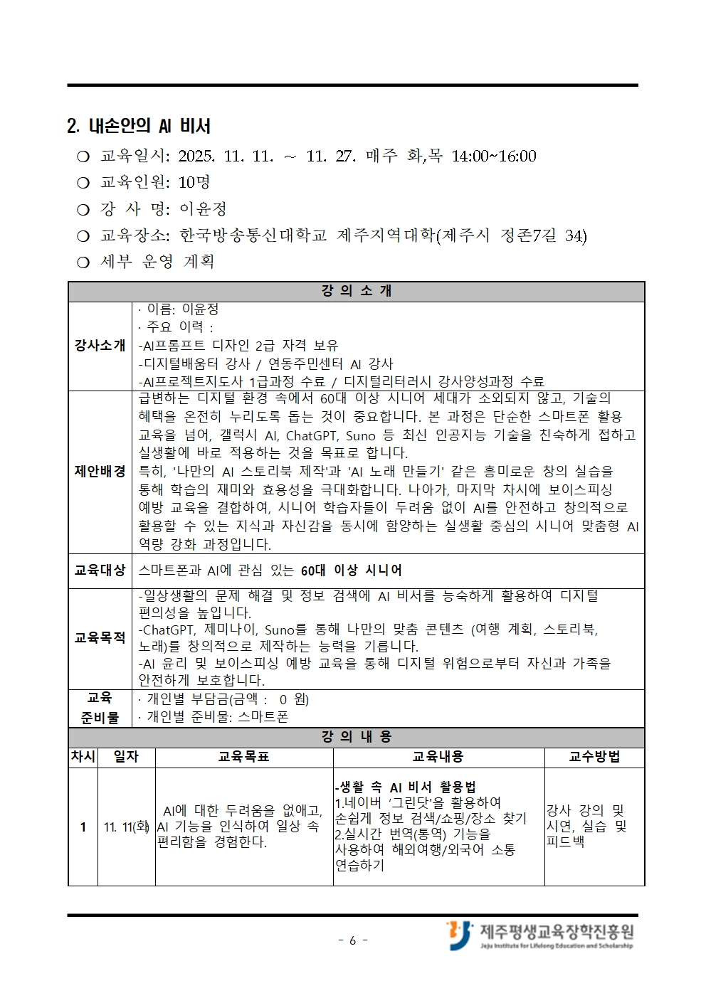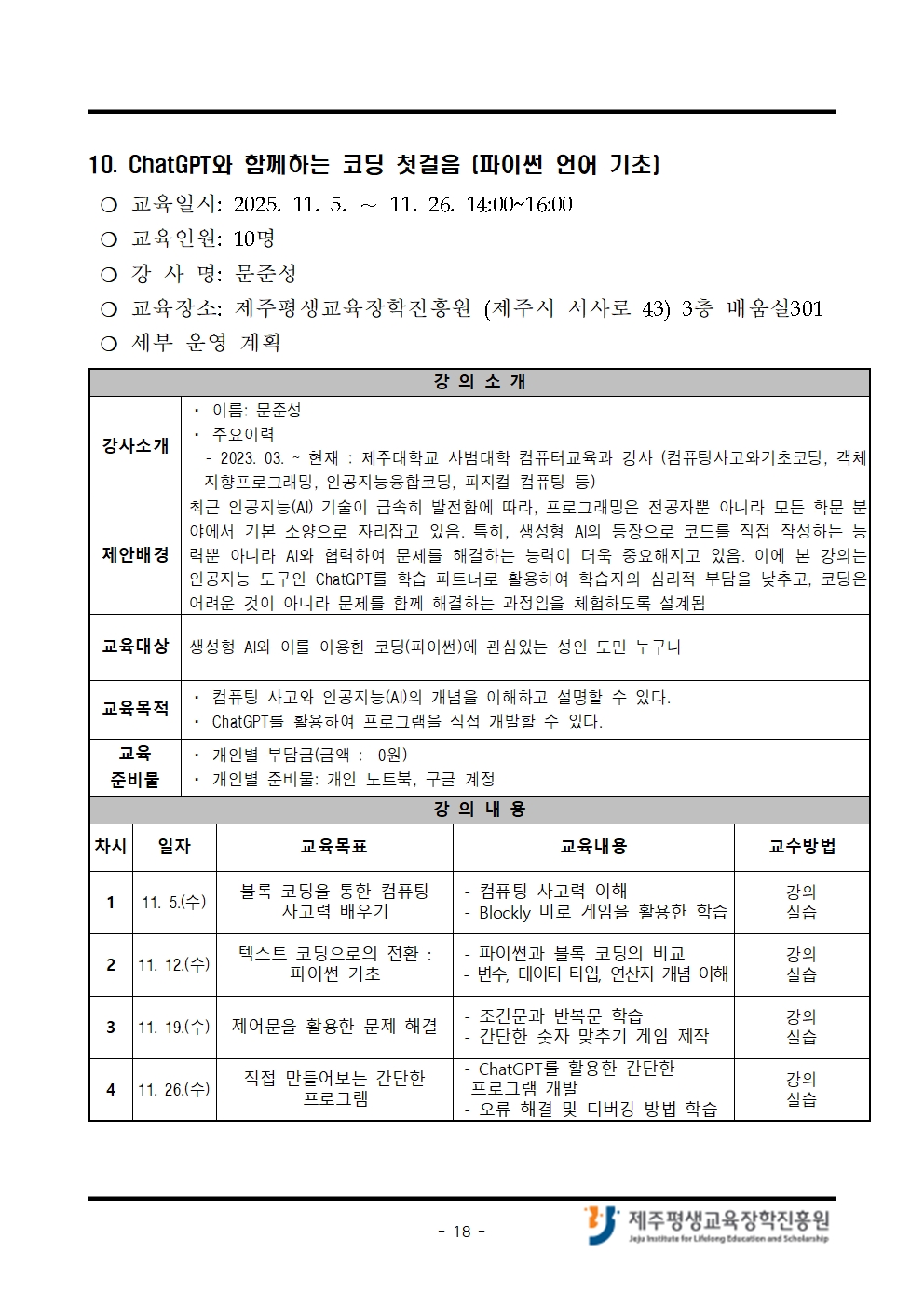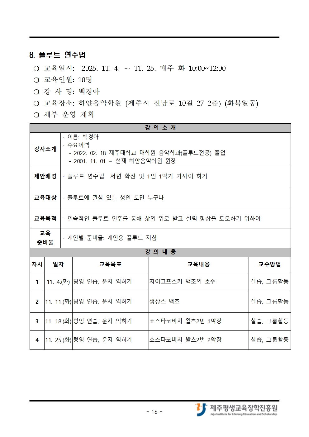 11월 「나도 제주도민대학 강사!」 교육생 모집