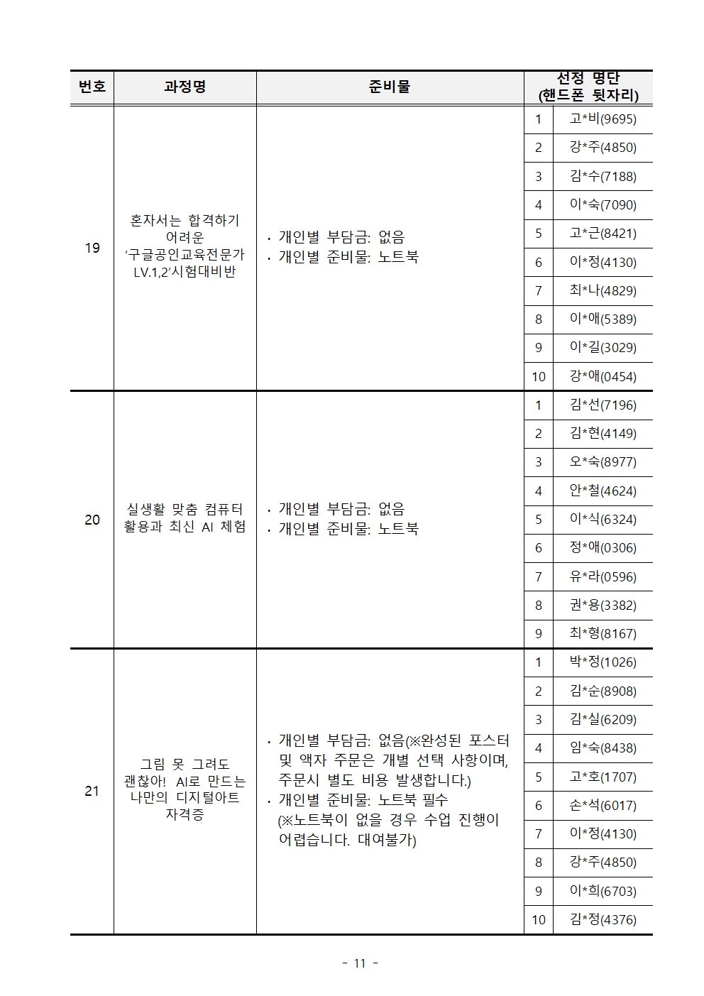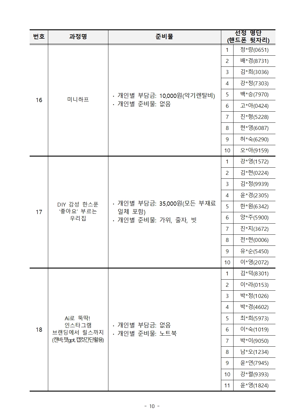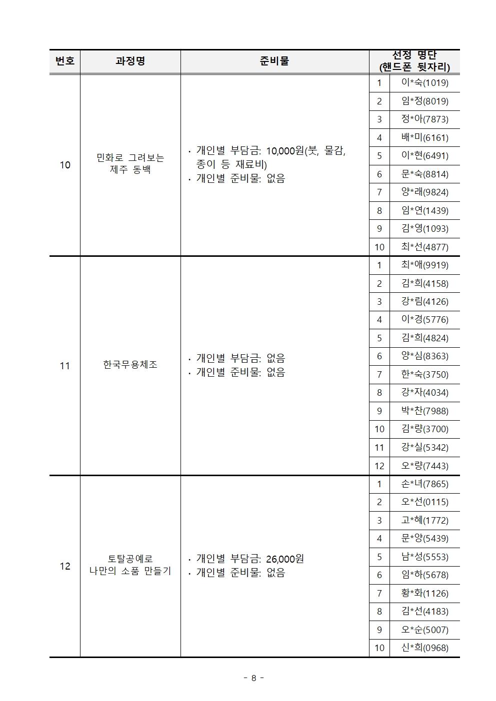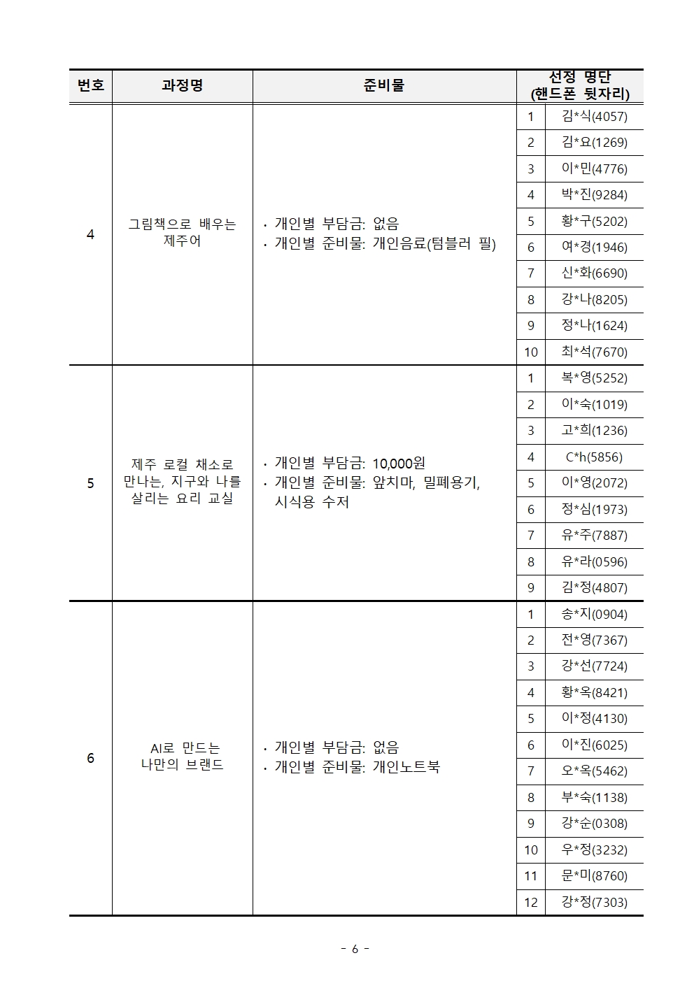 10월 「나도 제주도민대학 강사!」 교육과정 개설 및 교육생 선정 결과
