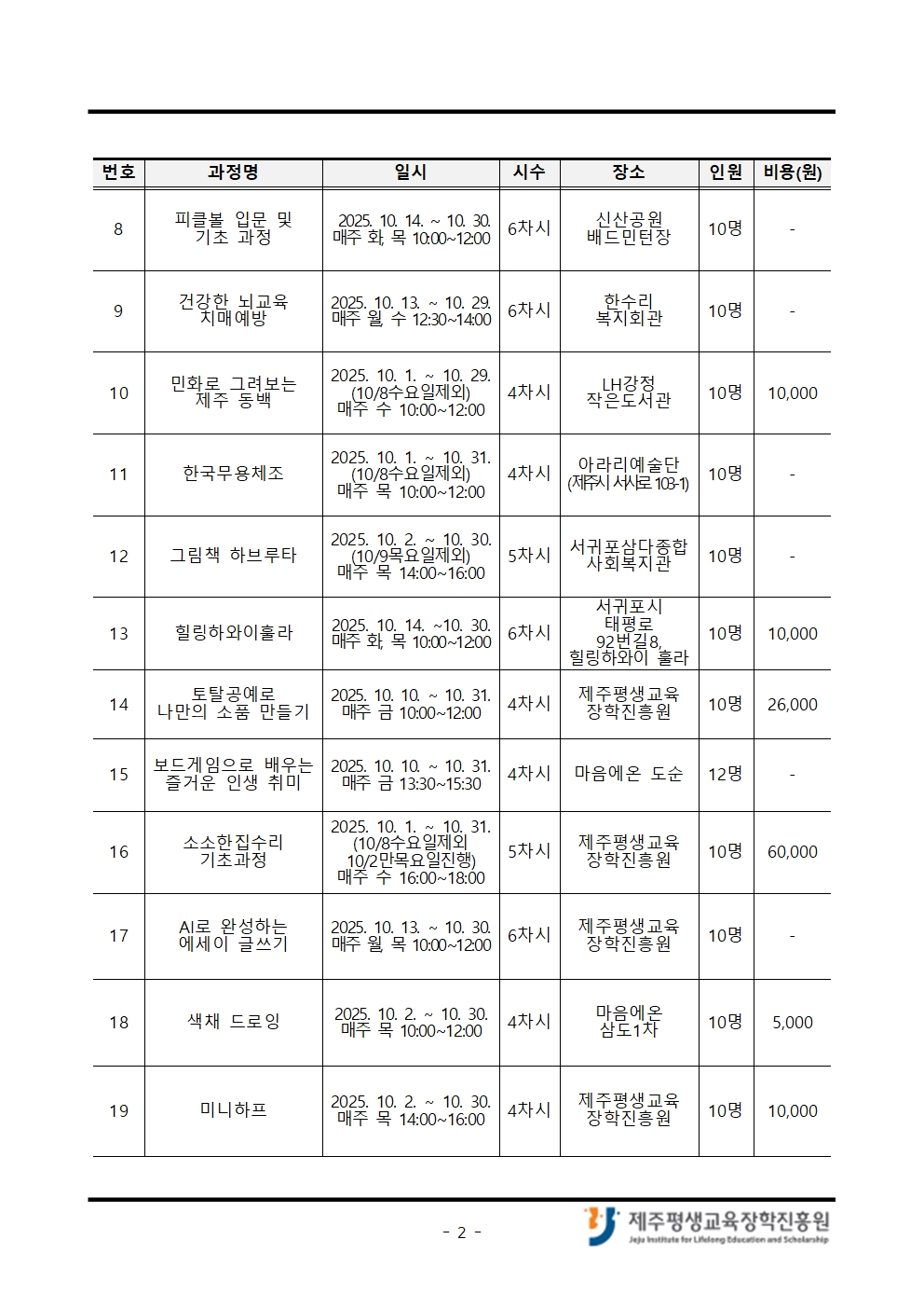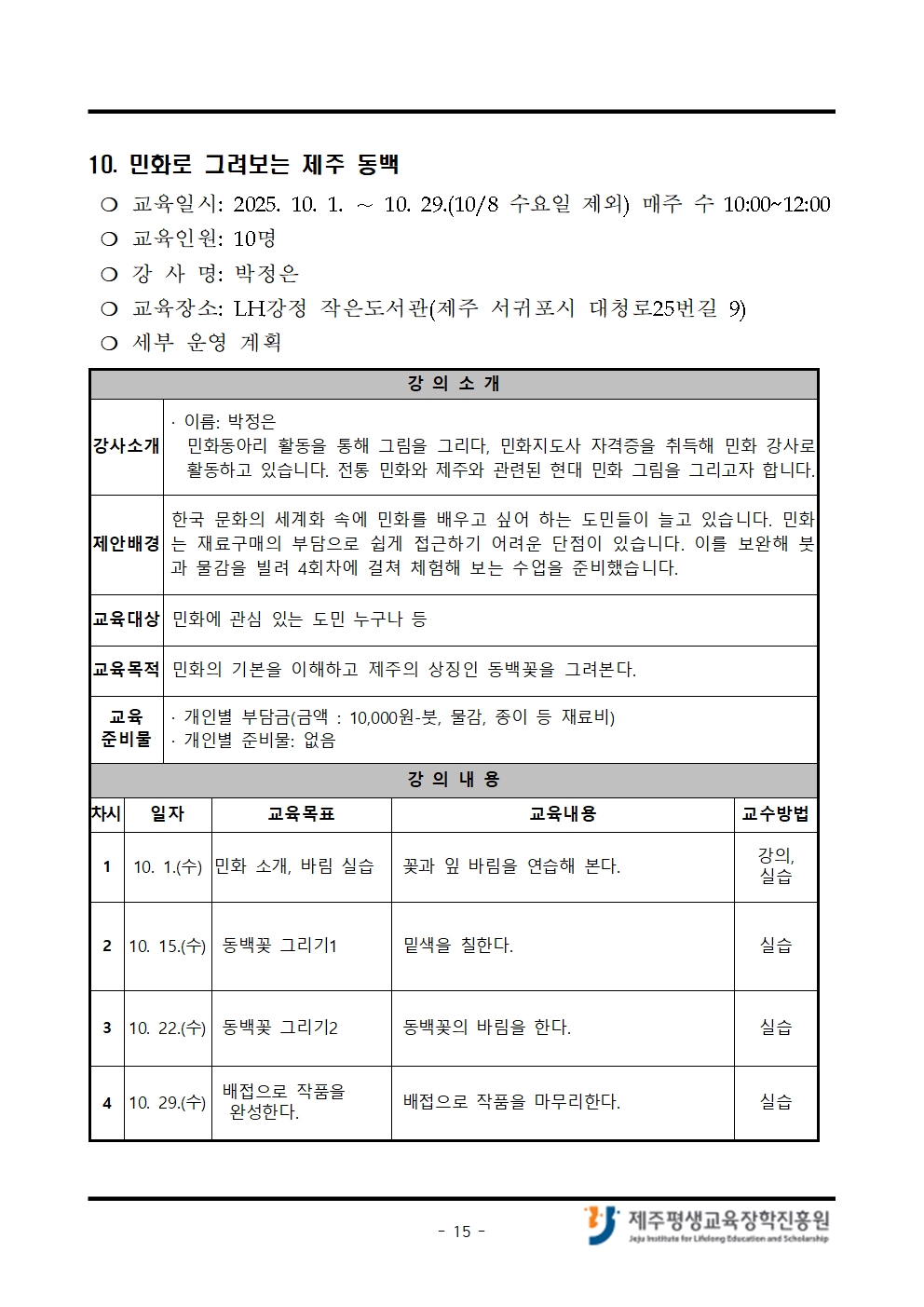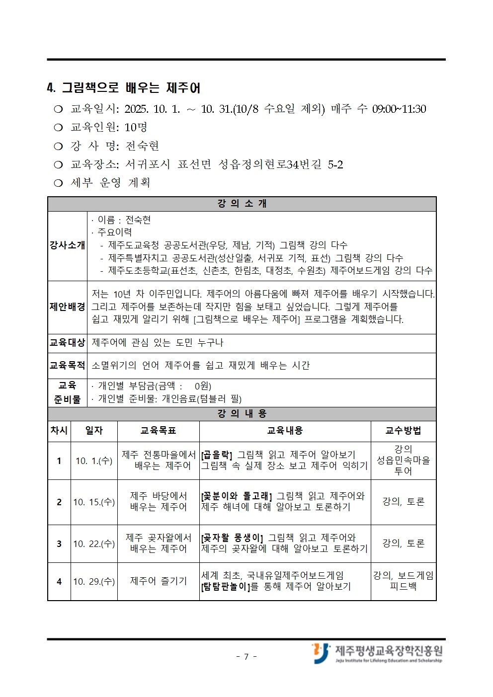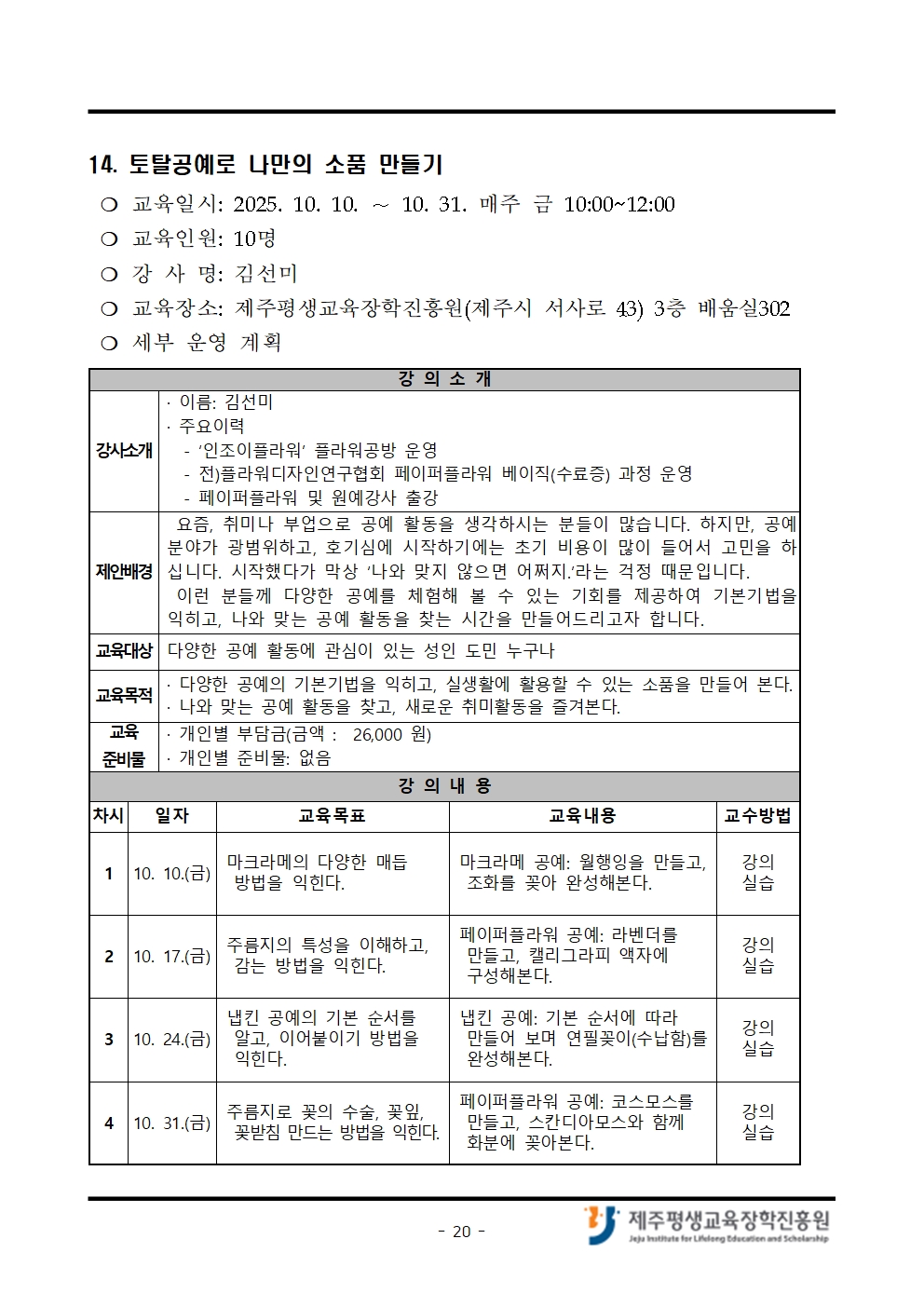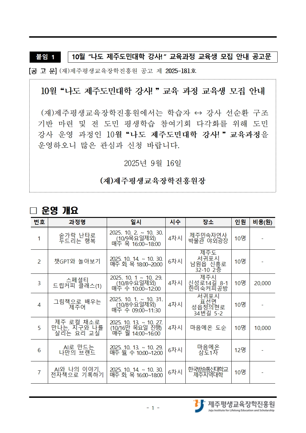 10월 「나도 제주도민대학 강사!」 교육생 모집