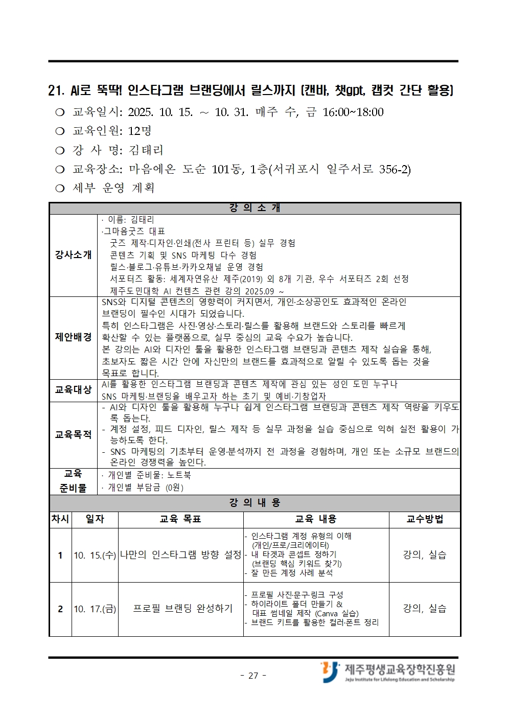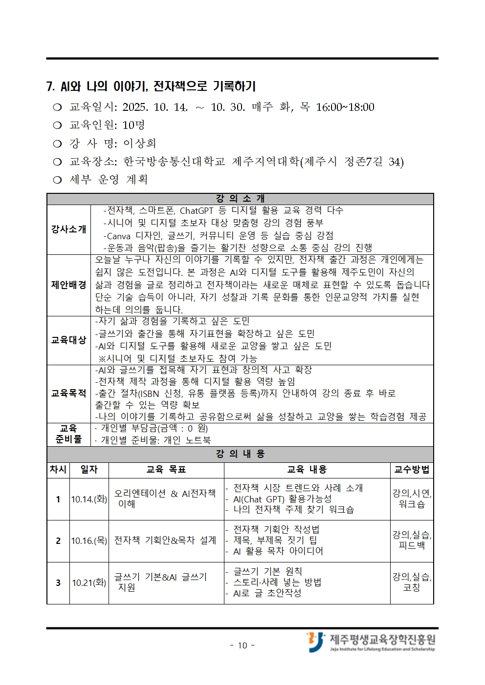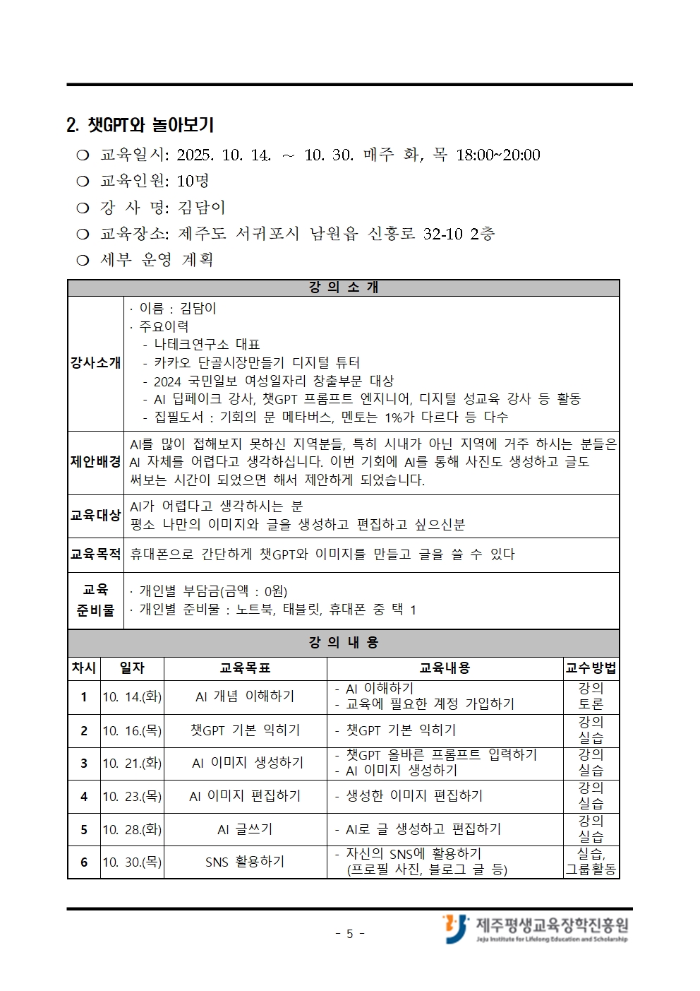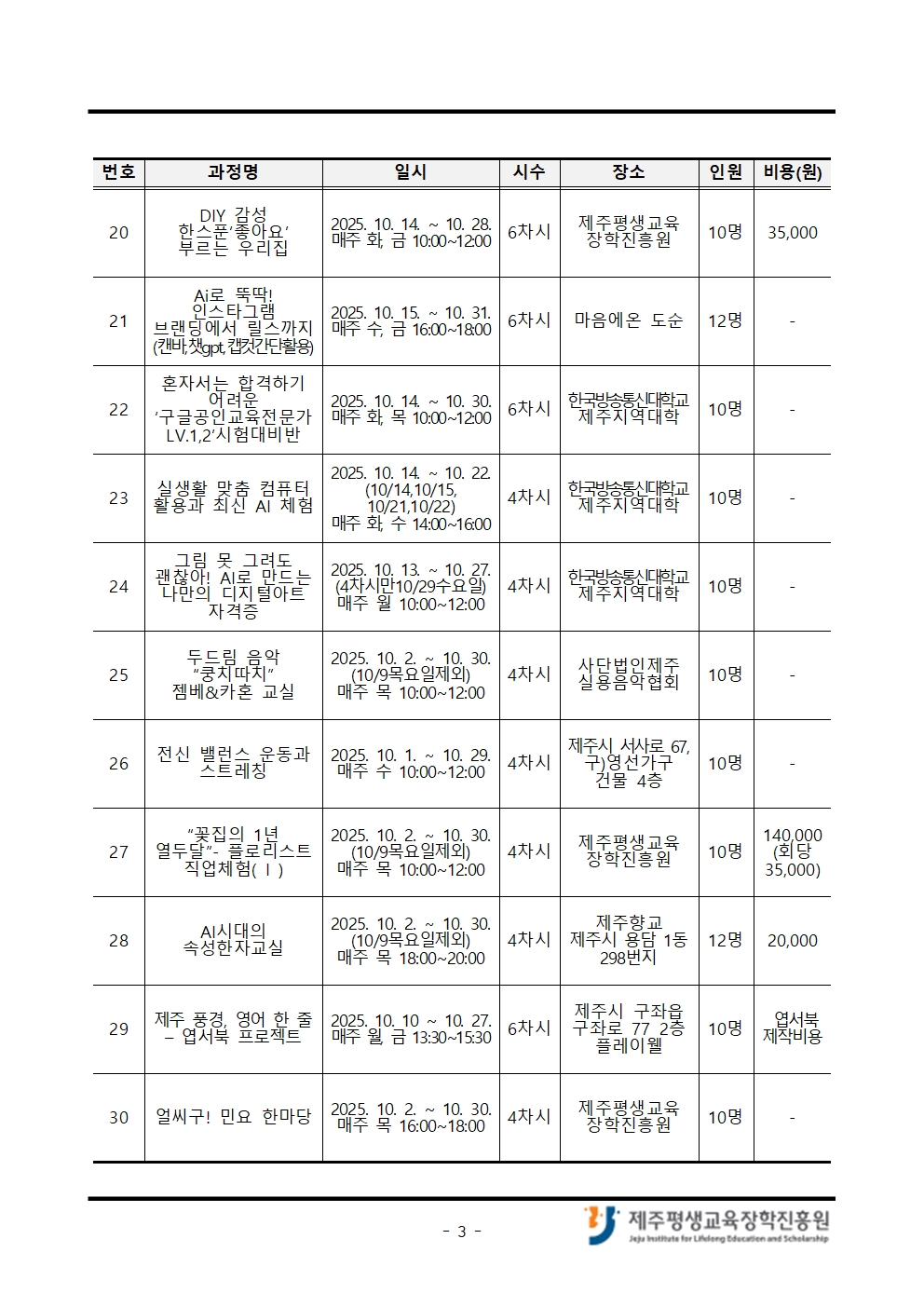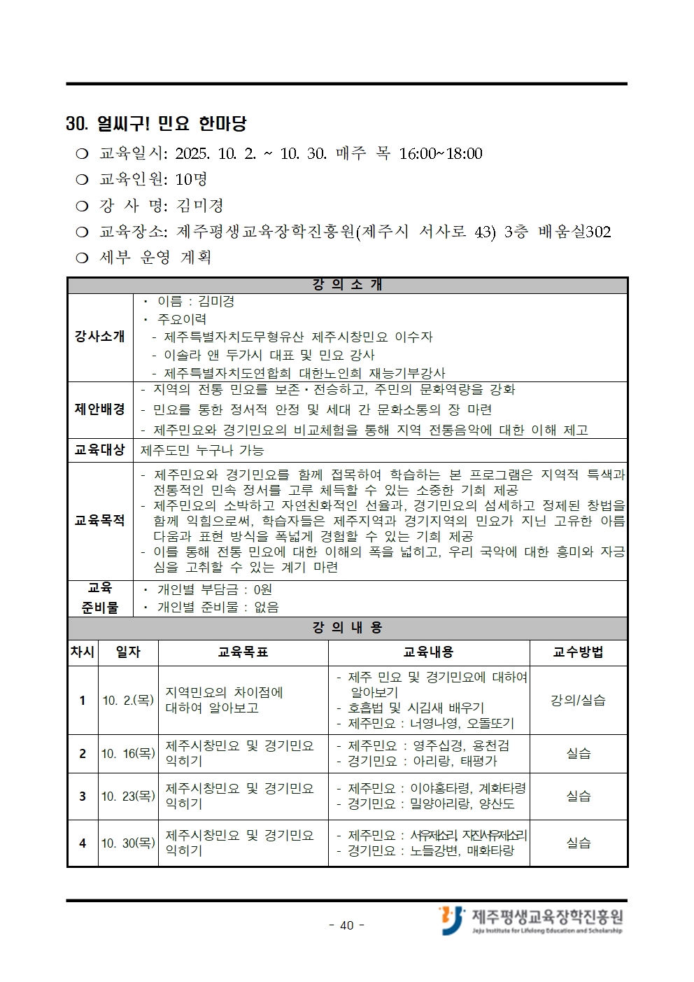 10월 「나도 제주도민대학 강사!」 교육생 모집