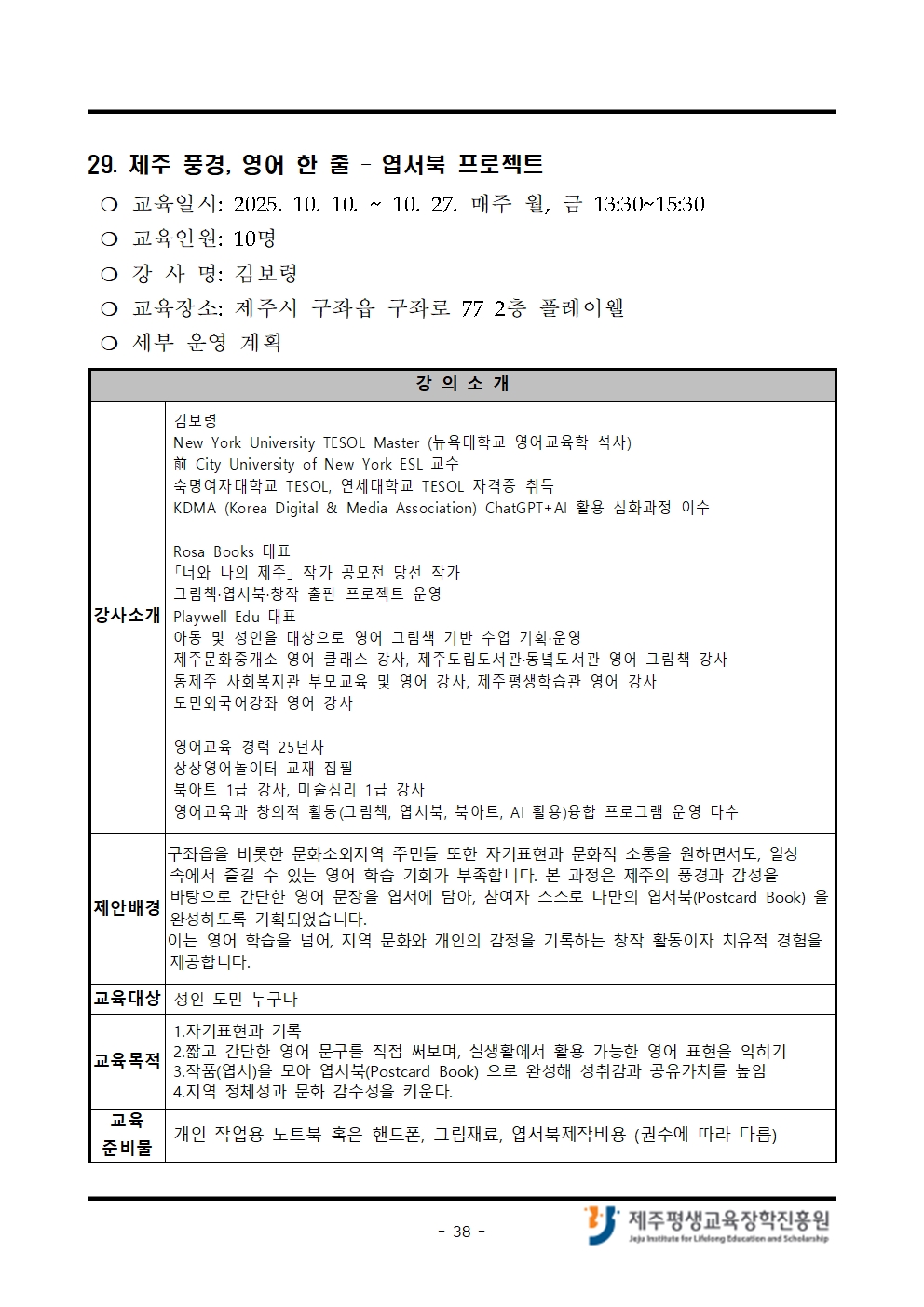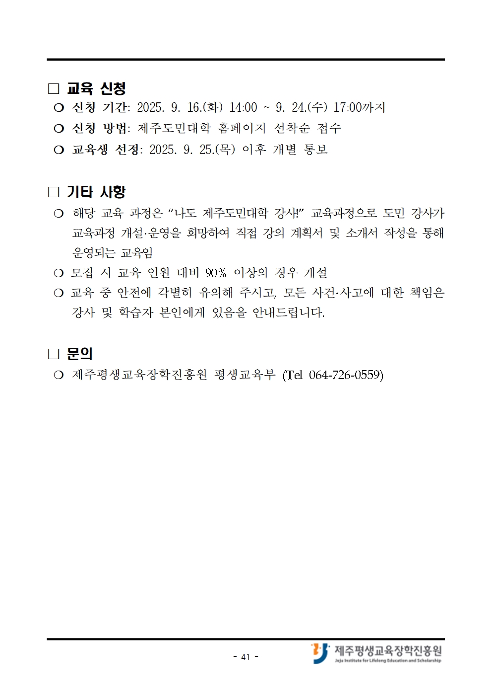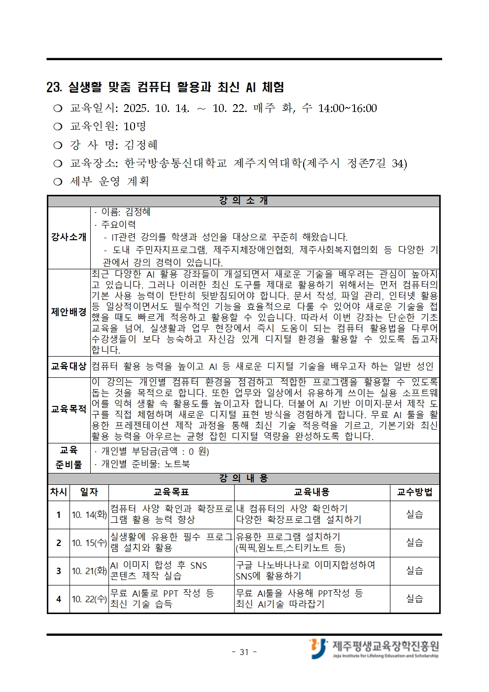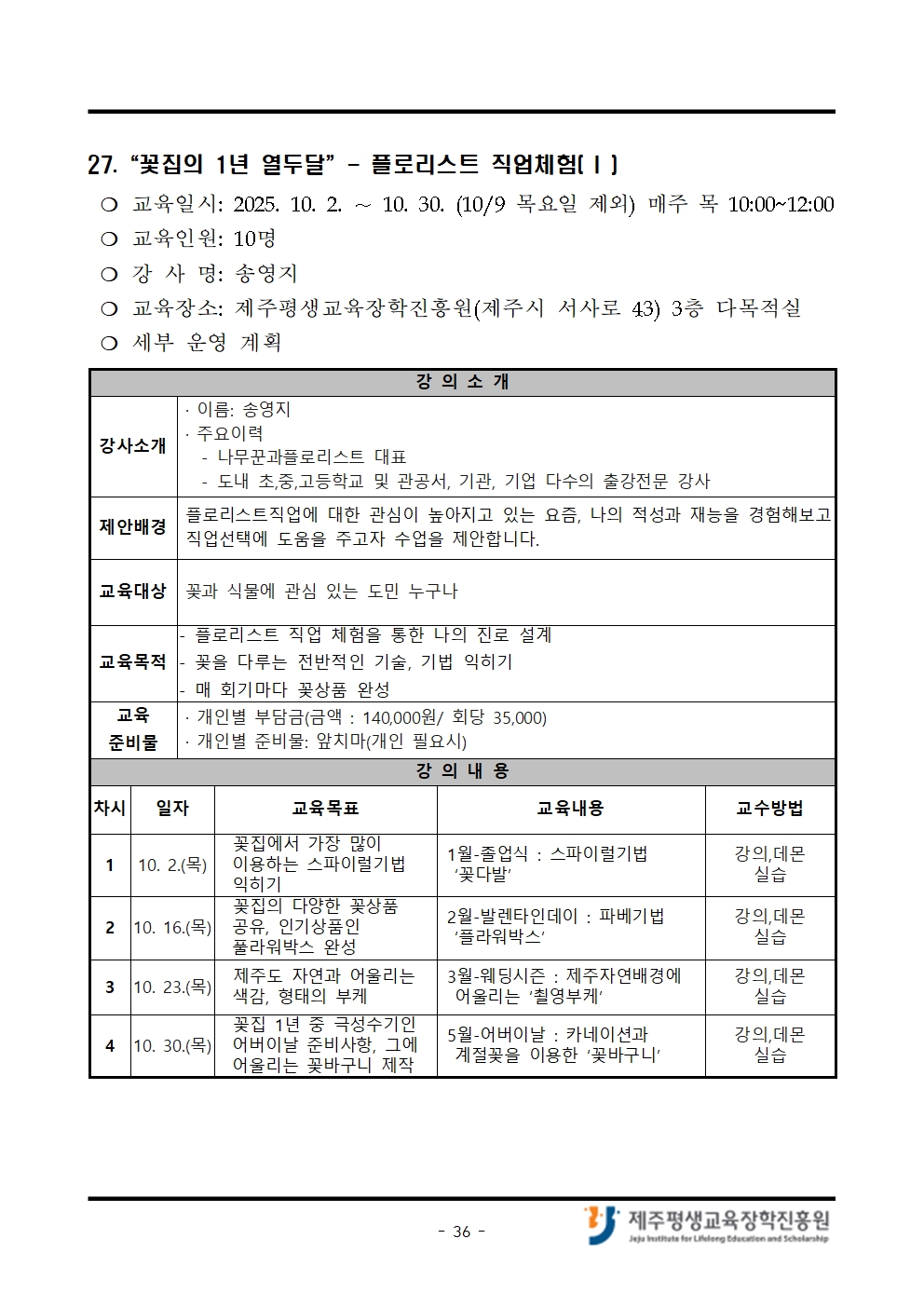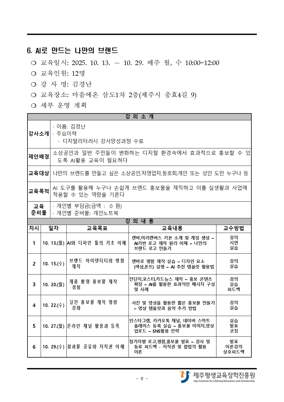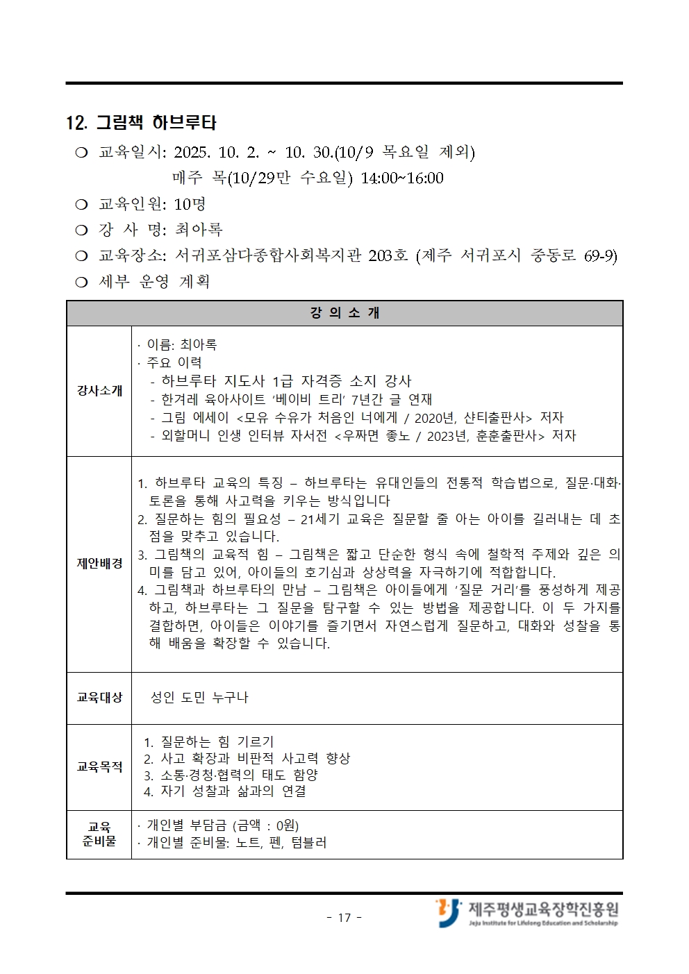 10월 「나도 제주도민대학 강사!」 교육생 모집