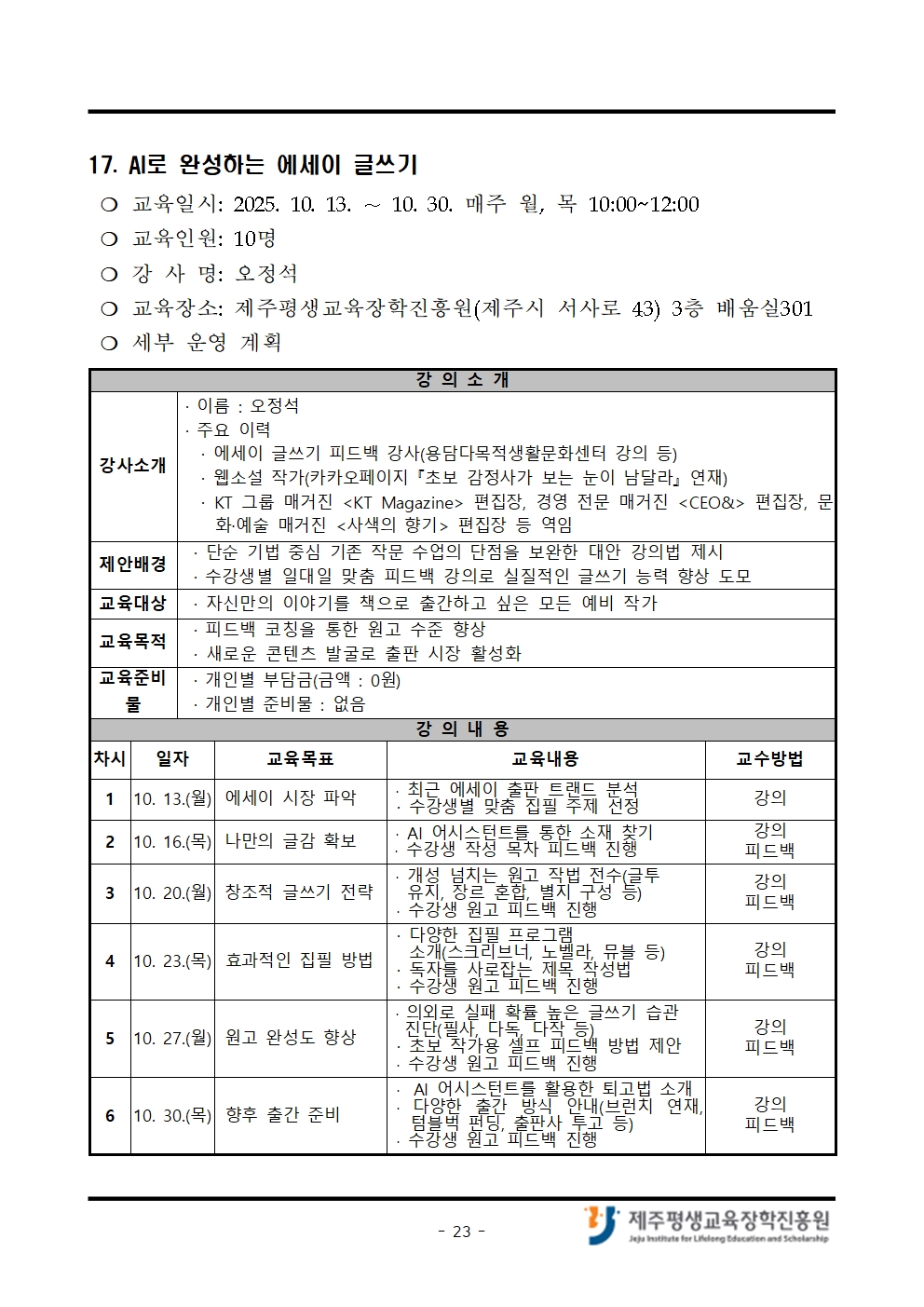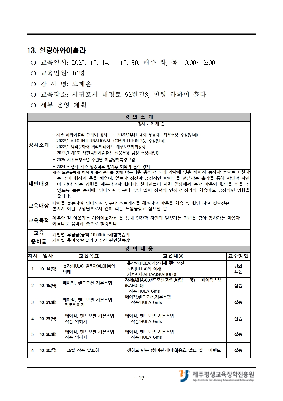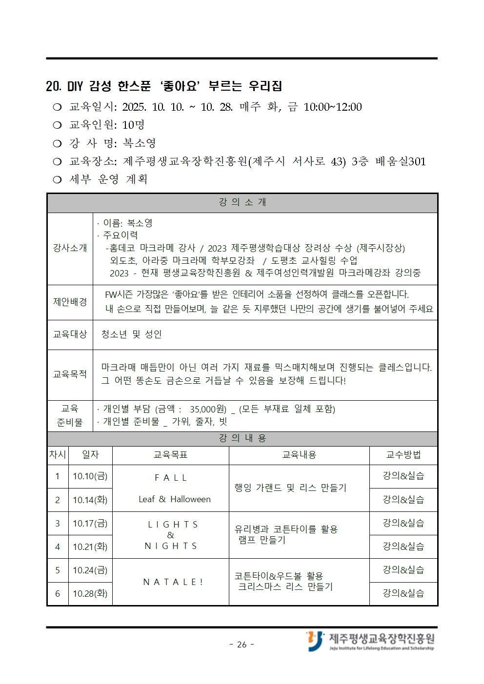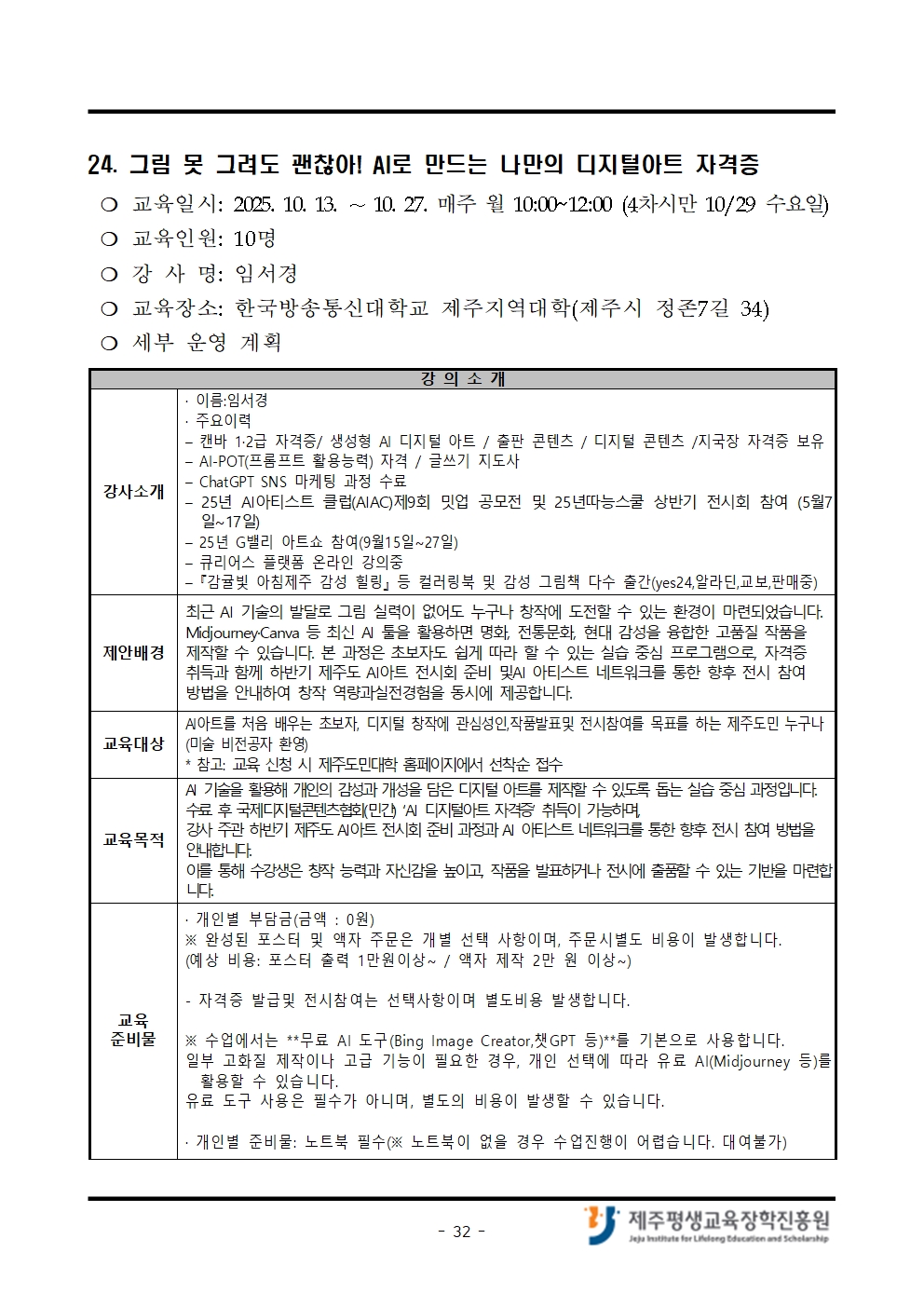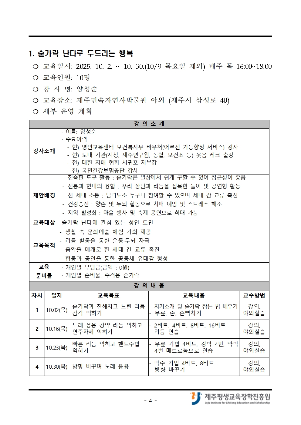 10월 「나도 제주도민대학 강사!」 교육생 모집
