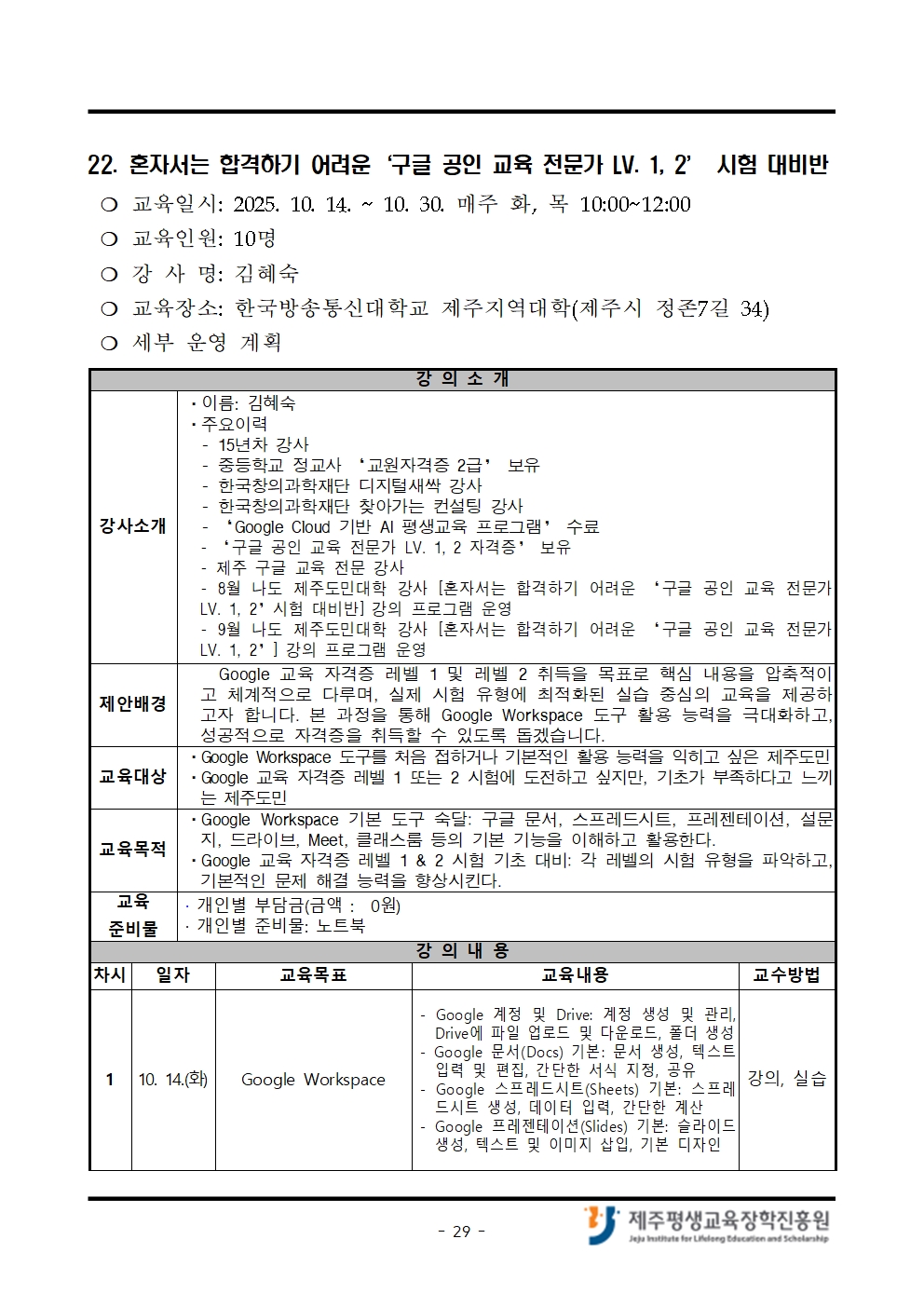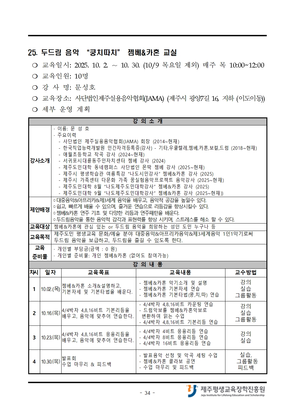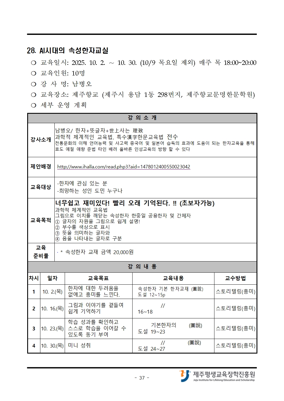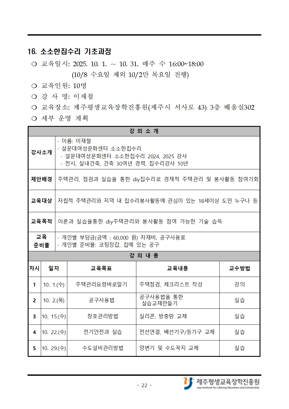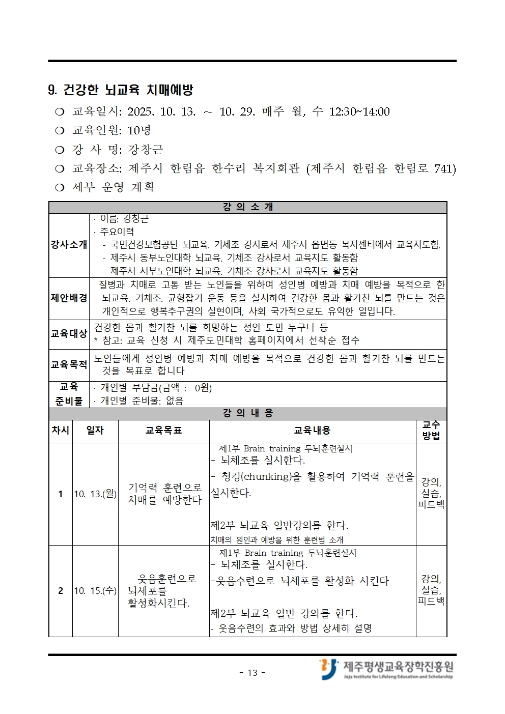 10월 「나도 제주도민대학 강사!」 교육생 모집