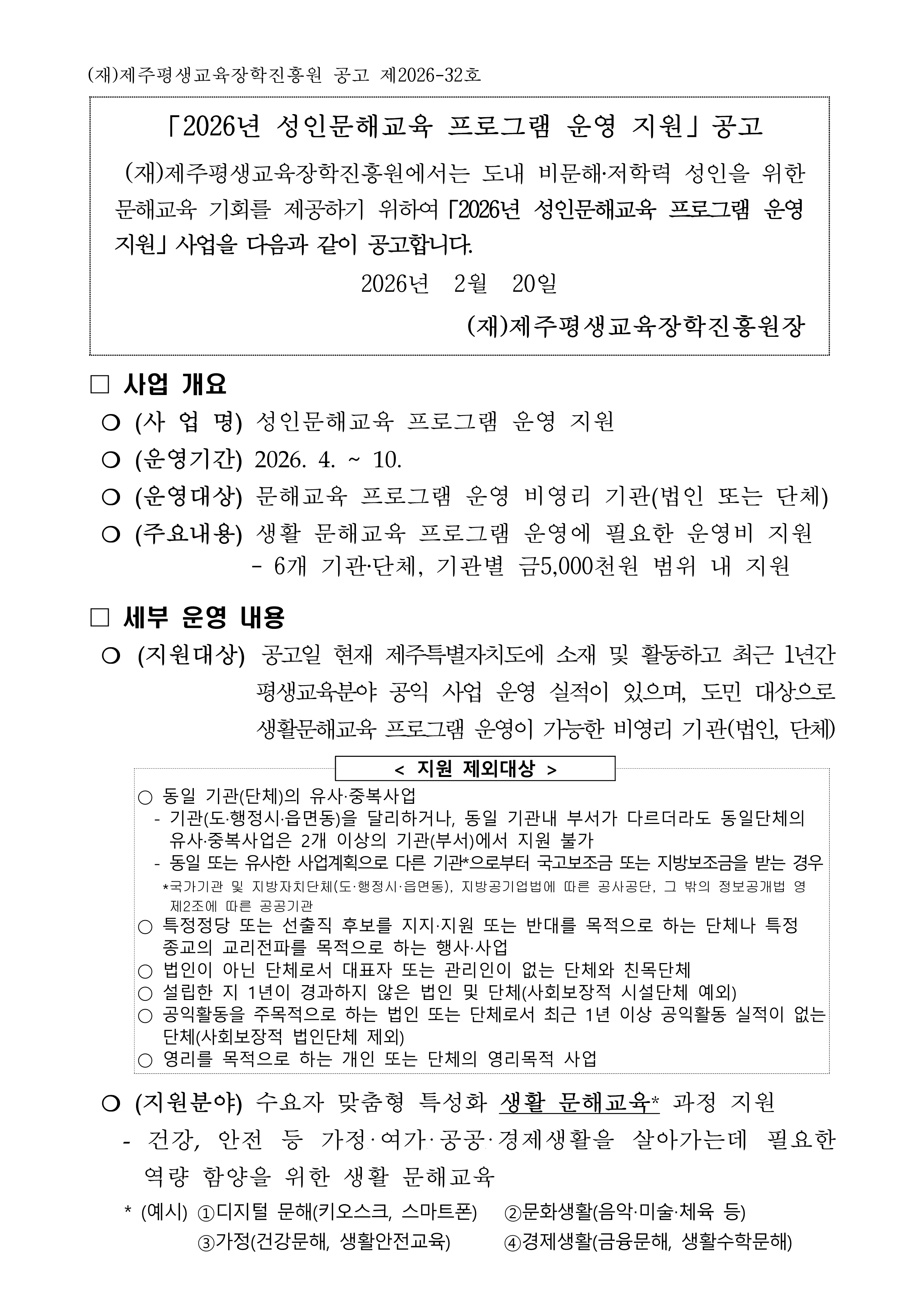 [공고문] 2026년 성인문해교육 프로그램 운영 지원.pdf (293 KBytes)