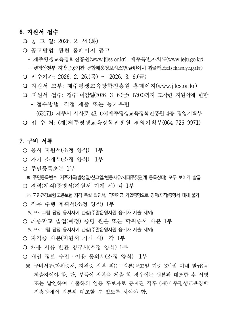 | 제 목 | 2026년 제주꿈바당어린이도서관 운영인력(기간제근로자) 공개채용 계획 공고 | ||