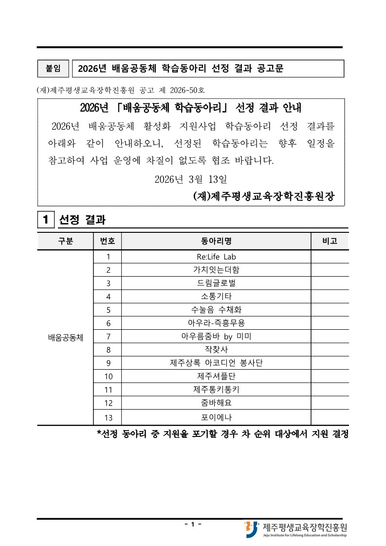 (공고문) 2026년 배움공동체 학습동아리 선정 결과 공고.pdf (240 KBytes)