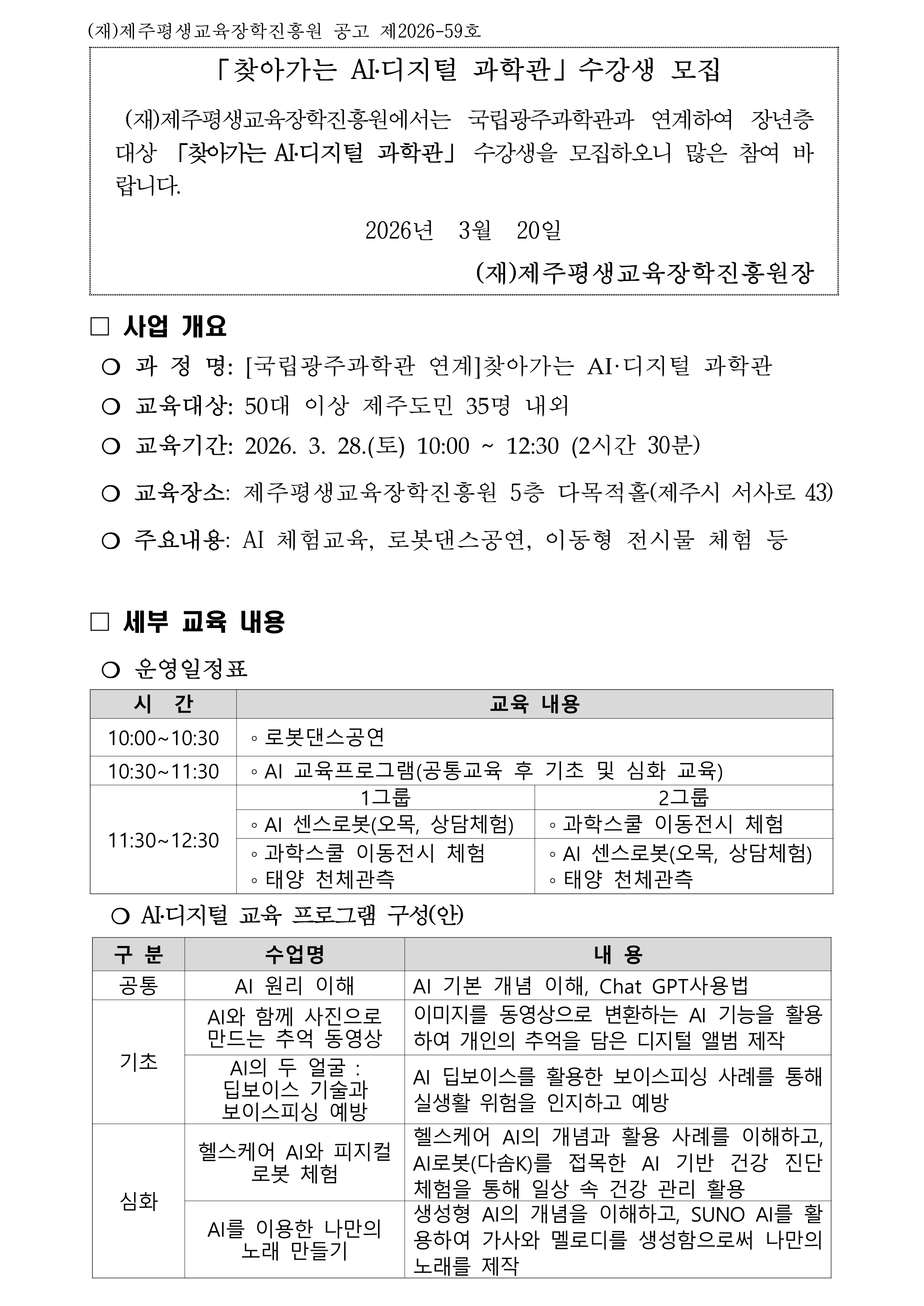 「찾아가는 AI디지털 과학관」 수강생 모집
