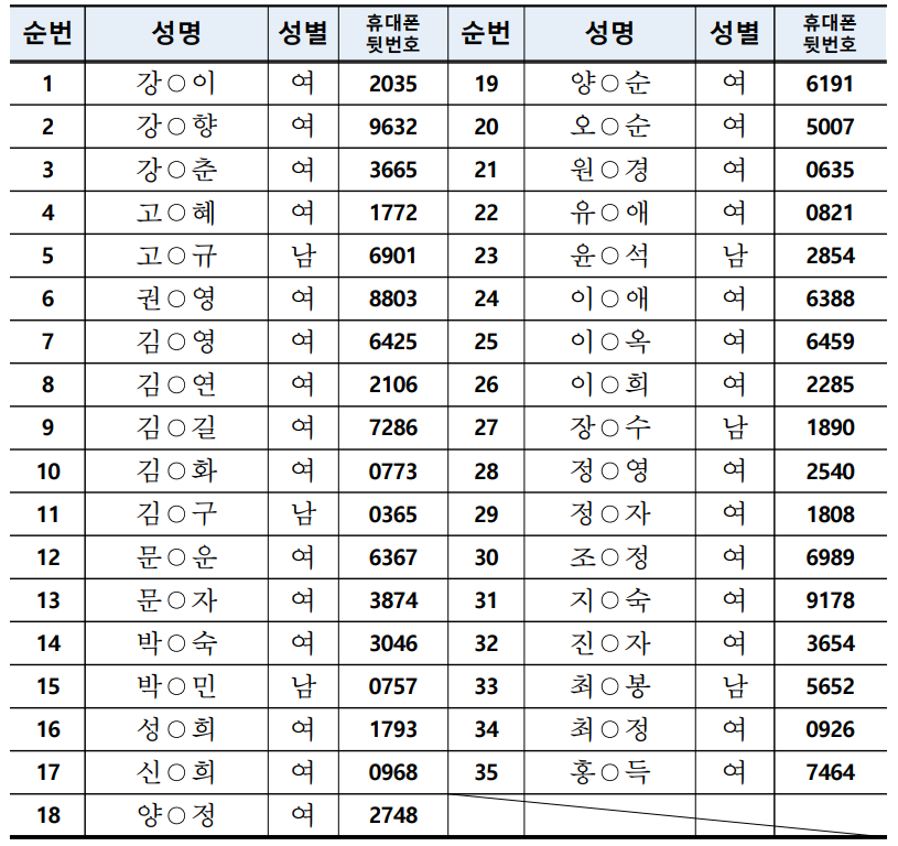 □선정결과 ❍ 선정인원: 35명 ❍ 교육생 선정 명단