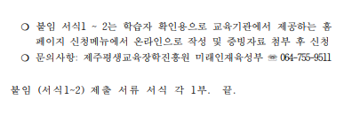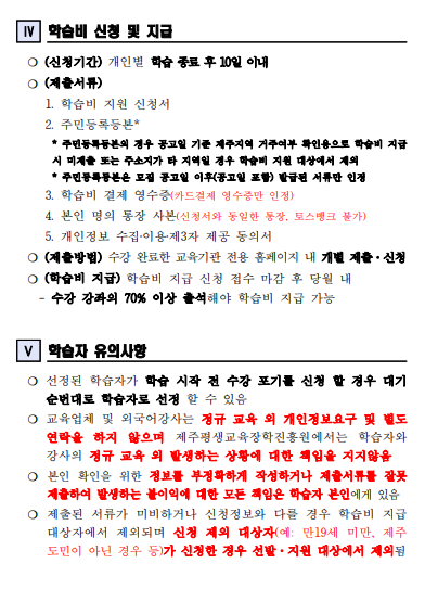 * 전화 외국어 학습비 지원은 제주평생교육장학흥원에서 지정한 교육기관에서 진행됩니다. * 선착순 모집이며, 선발자는 문자 개별 안내 예정입니다. ※ 수신거부 및 스팸처리 등으로 문자를 확인하지 못하여 발생하는 불이익에 대해서는 책임지지 않습니다. 선착순에 들었으나 문자 수신을 받지 못했을 경우(선발자 안내 이후), 미래인재육성부로 연락주시기 바랍니다. (신청하기) : 제주평생교육다모아 (damoa.jeju.kr) → 4월 8일(수)부터 신청