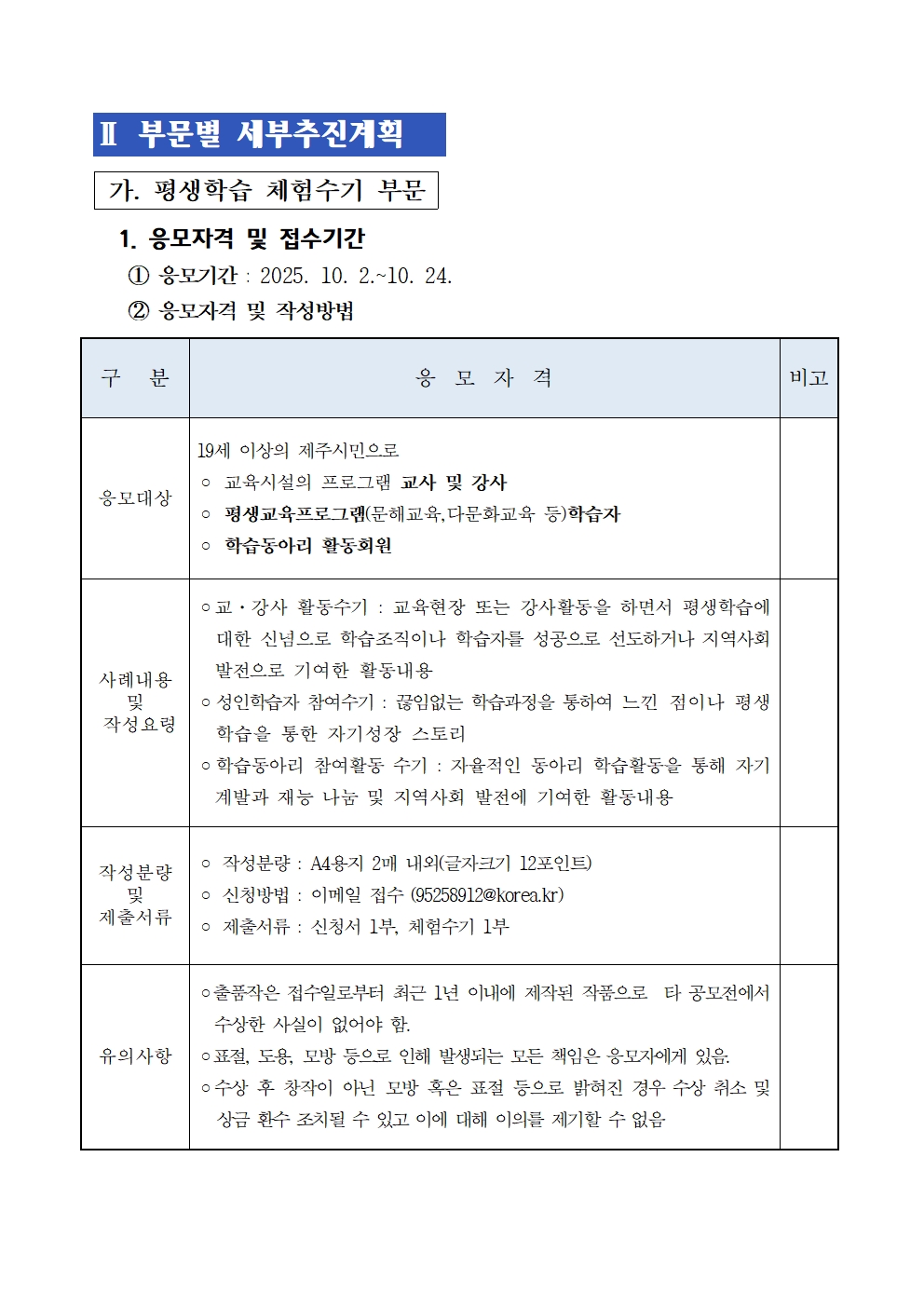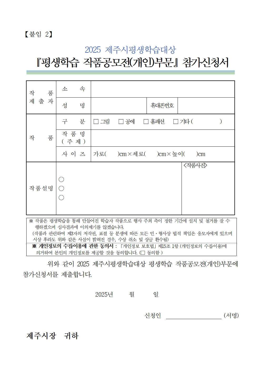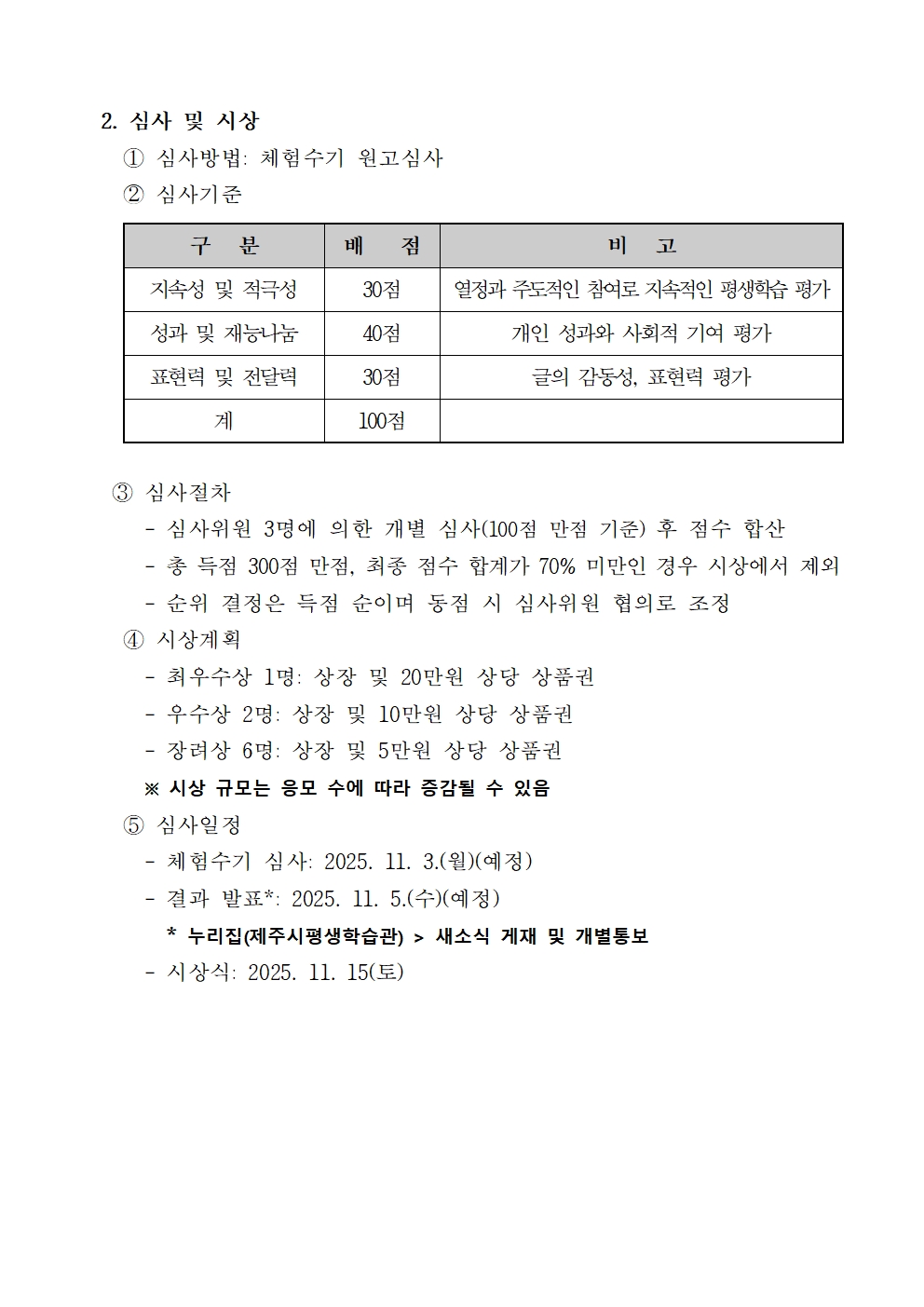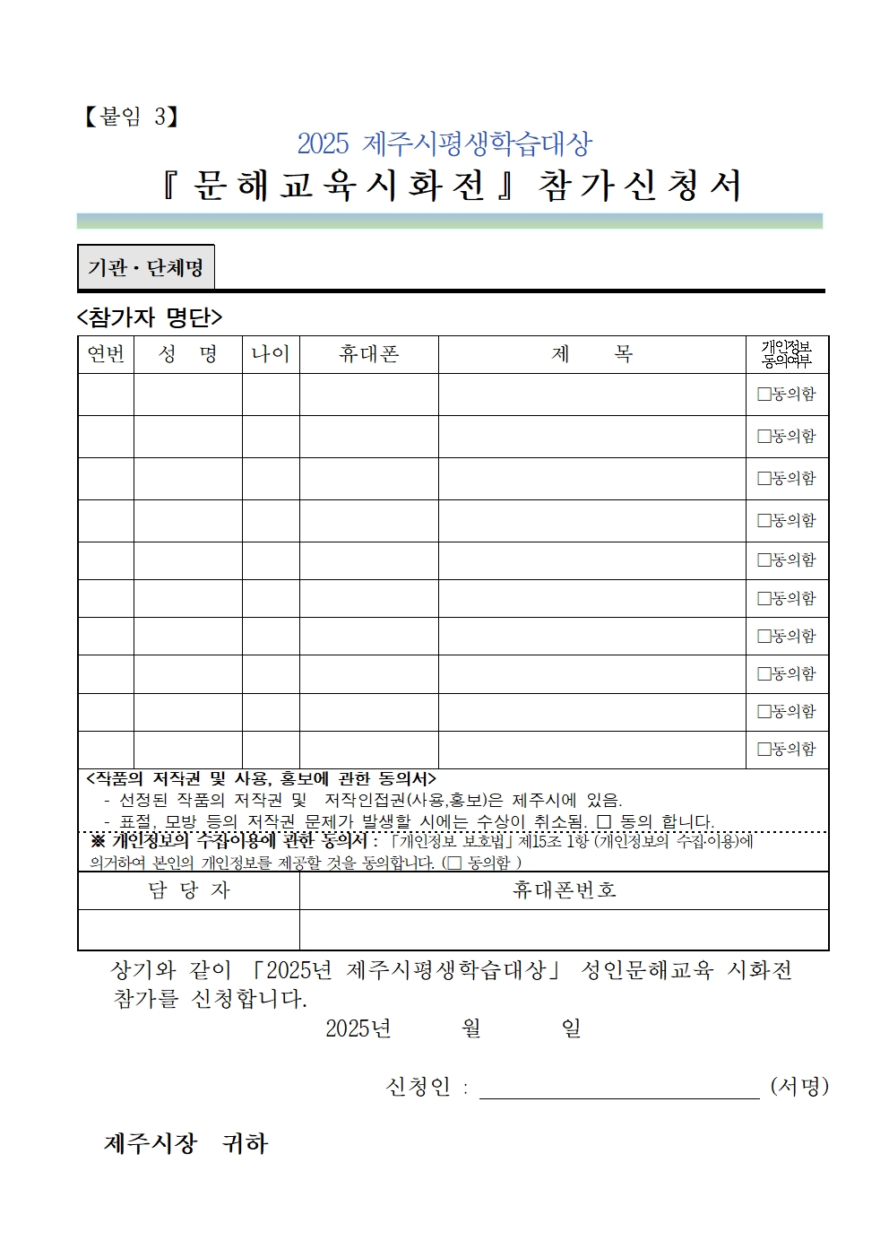 2025년 제주시평생학습대상(체험수기·작품전시·문해교육시화전) 공모 안내