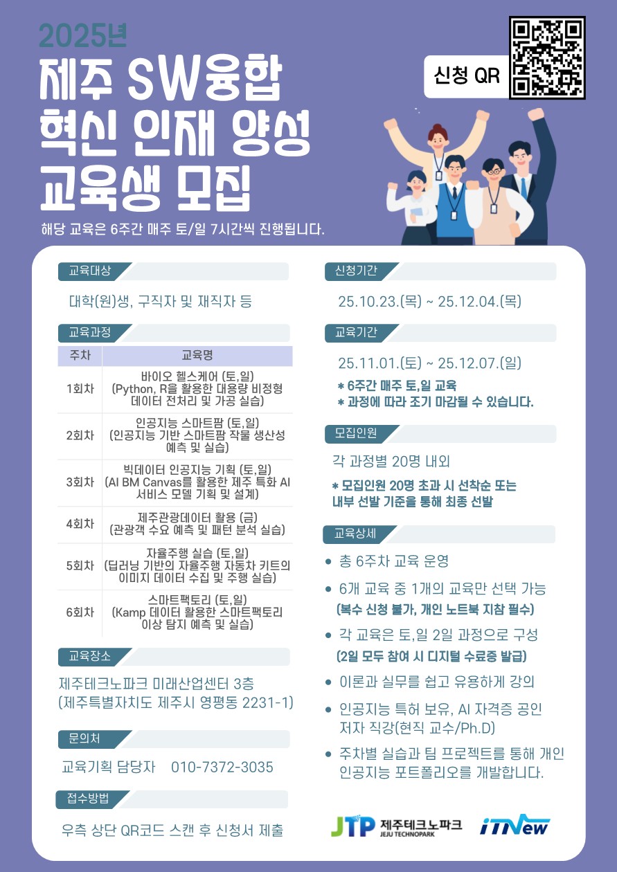 2025년 제주 SW융합 혁신 인재 양성 교육생 모집