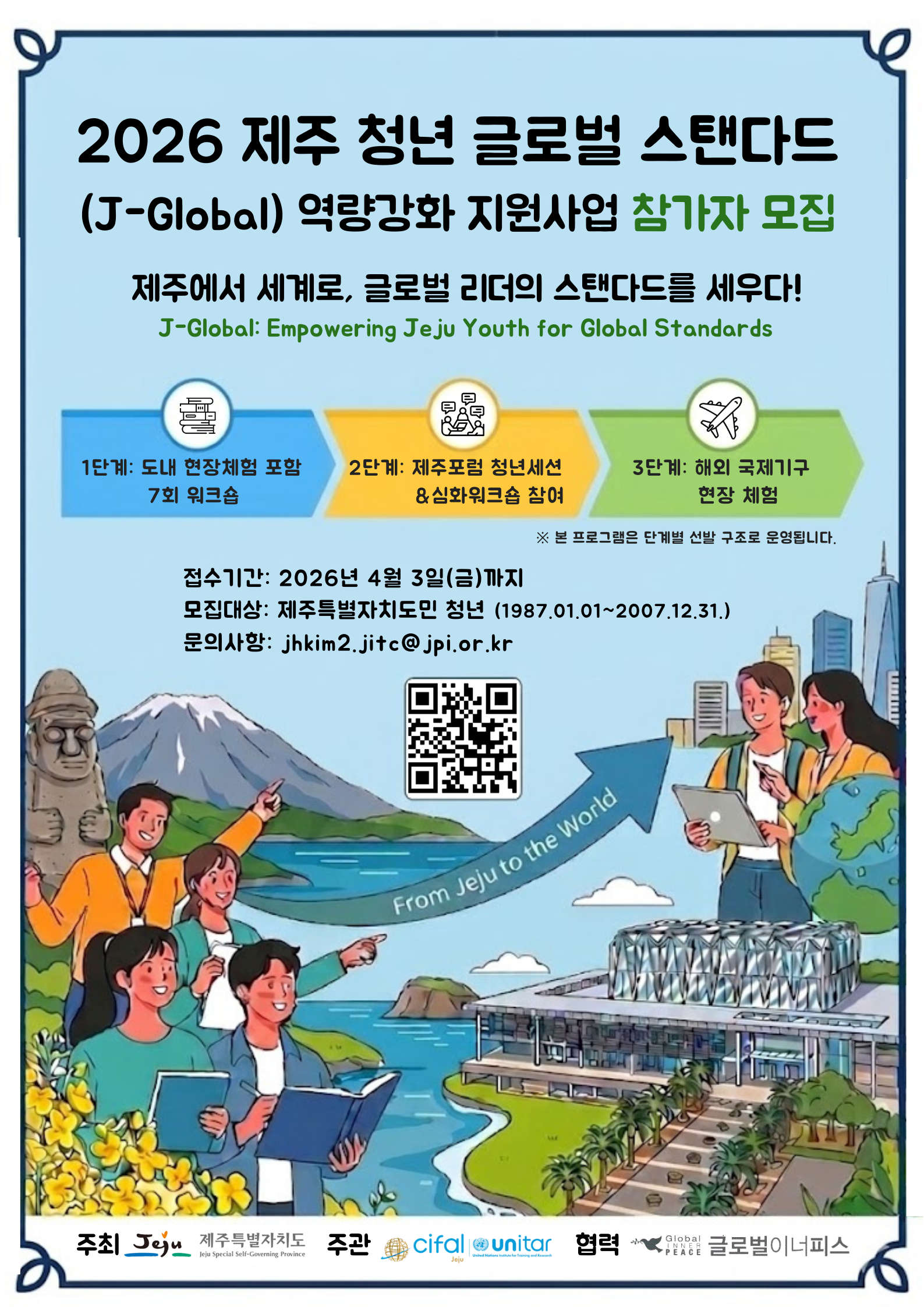 | 제 목 | 2026년 제주청년 글로벌스탠다드 역량강화 지원사업 참가자 모집 안내 | ||