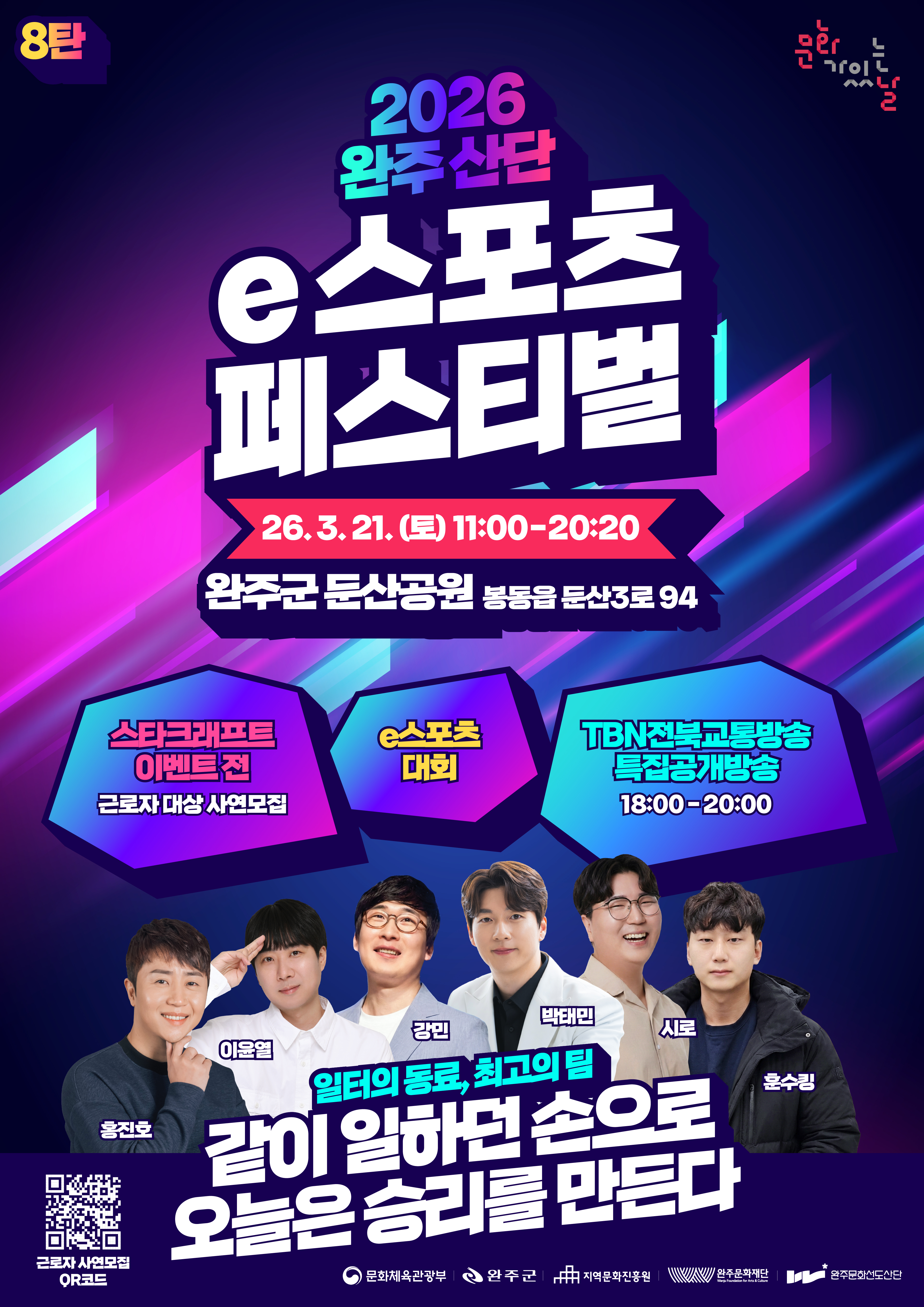 | 제 목 | 컬처썸(Culture썸), 썸 타는 문화가 있는 날 '2026 완주 산단 e스포츠 페스티벌' 행사 안내 | ||