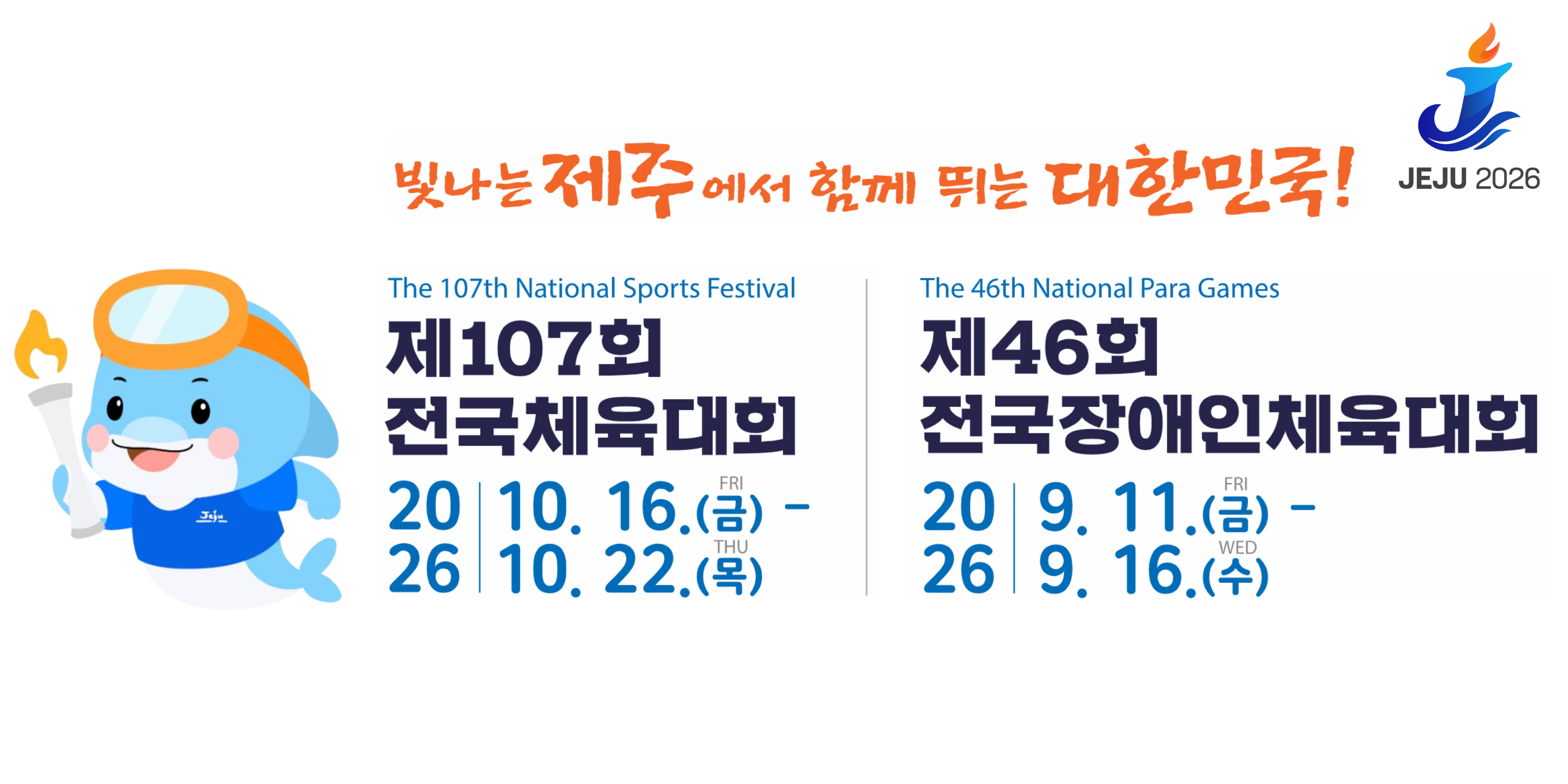 2026년 제주에서「제107회 전국체육대회(2026. 10. 16. ~ 22.)」및「제46회 전국장애인체육대회(2026. 9. 11. ~ 16.)」개최됨을 붙임과 같이 안내드 립니다. |